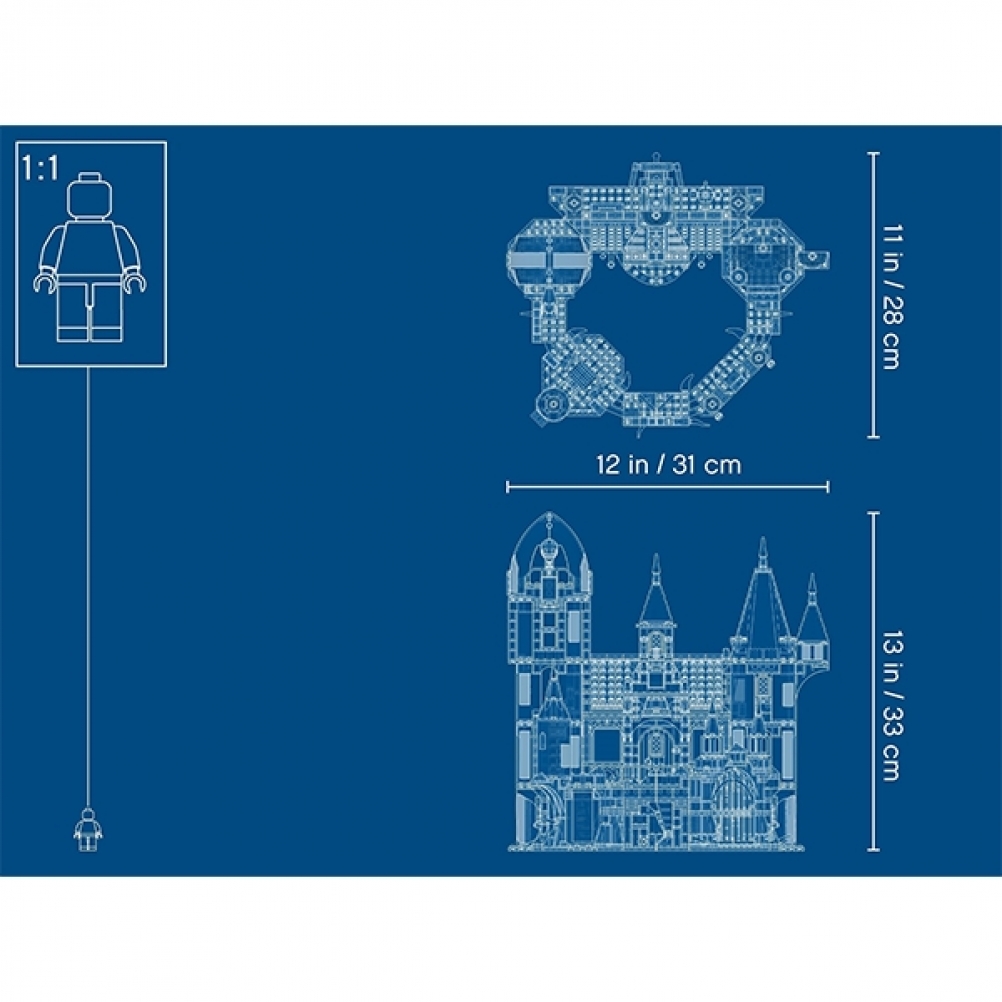Una volta costruito, il set di gioco LEGO® Hidden Side™ Il Castello Misterioso (70437) misura 34 cm di altezza, 31 cm di larghezza e 27 cm di profondità.