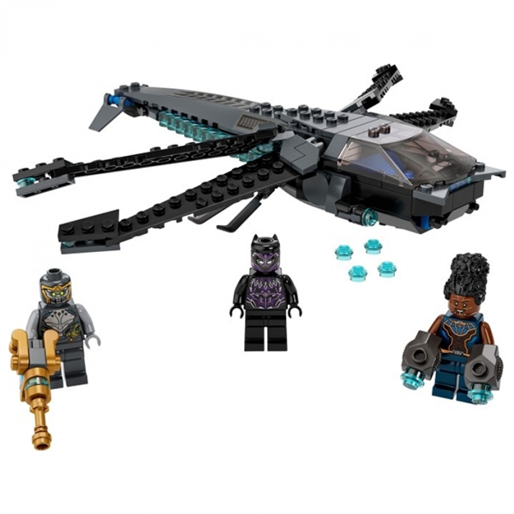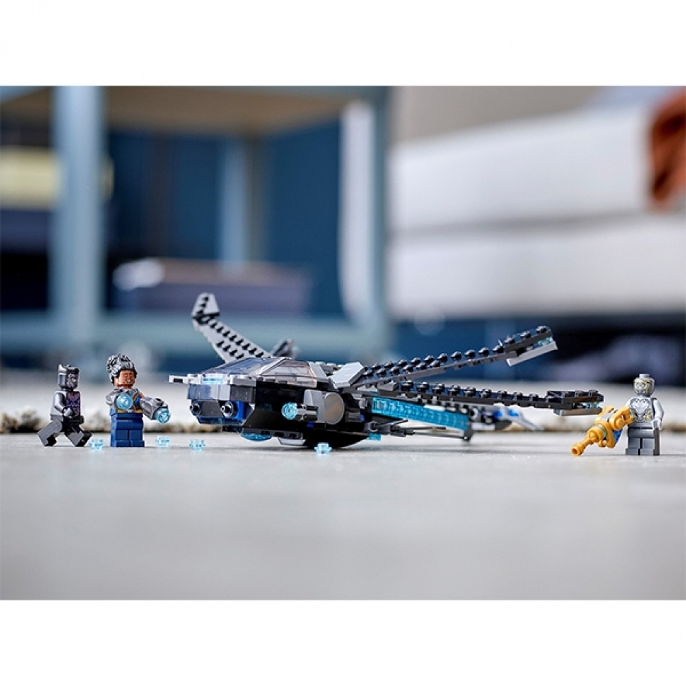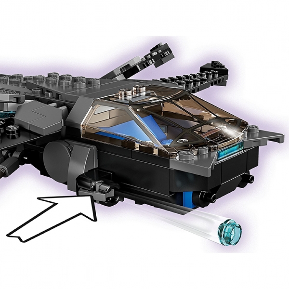 Questa riproduzione originale del leggendario aereo di Black Panther è un set straordinario progettato per offrire ai bambini il meglio con cui giocare e da esporre. Il futuristico velivolo di Wakandan è dotato di 4 ali regolabili, che si muovono in avanti, indietro, su e giù, 2 shooter e un abitacolo apribile in cui è possibile posizionare ai comandi una minifigure. Il set è dotato di 3 minifigure per ispirare il gioco di fantasia: Black Panther, sua sorella Shuri e un malvagio guerriero Chitauri armato di un potente blaster.