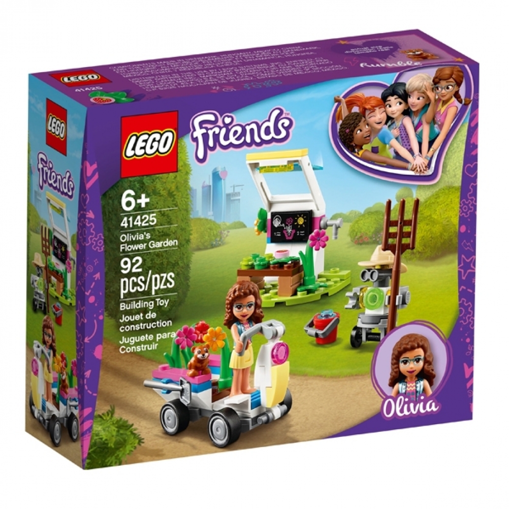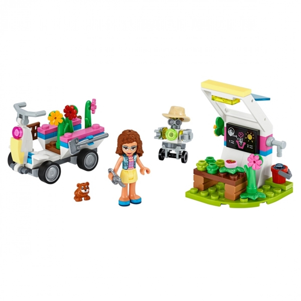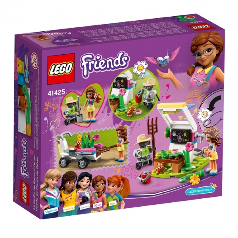 • Il giardino dei fiori di Olivia (41425) comprende una mini-doll costruibile, un robot giardiniere, un simpatico criceto, un veicolo giocattolo che raccoglie le piante e una serra dove le bambine possono far finta di coltivare fiori e frutti.