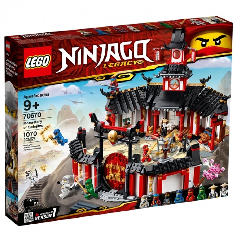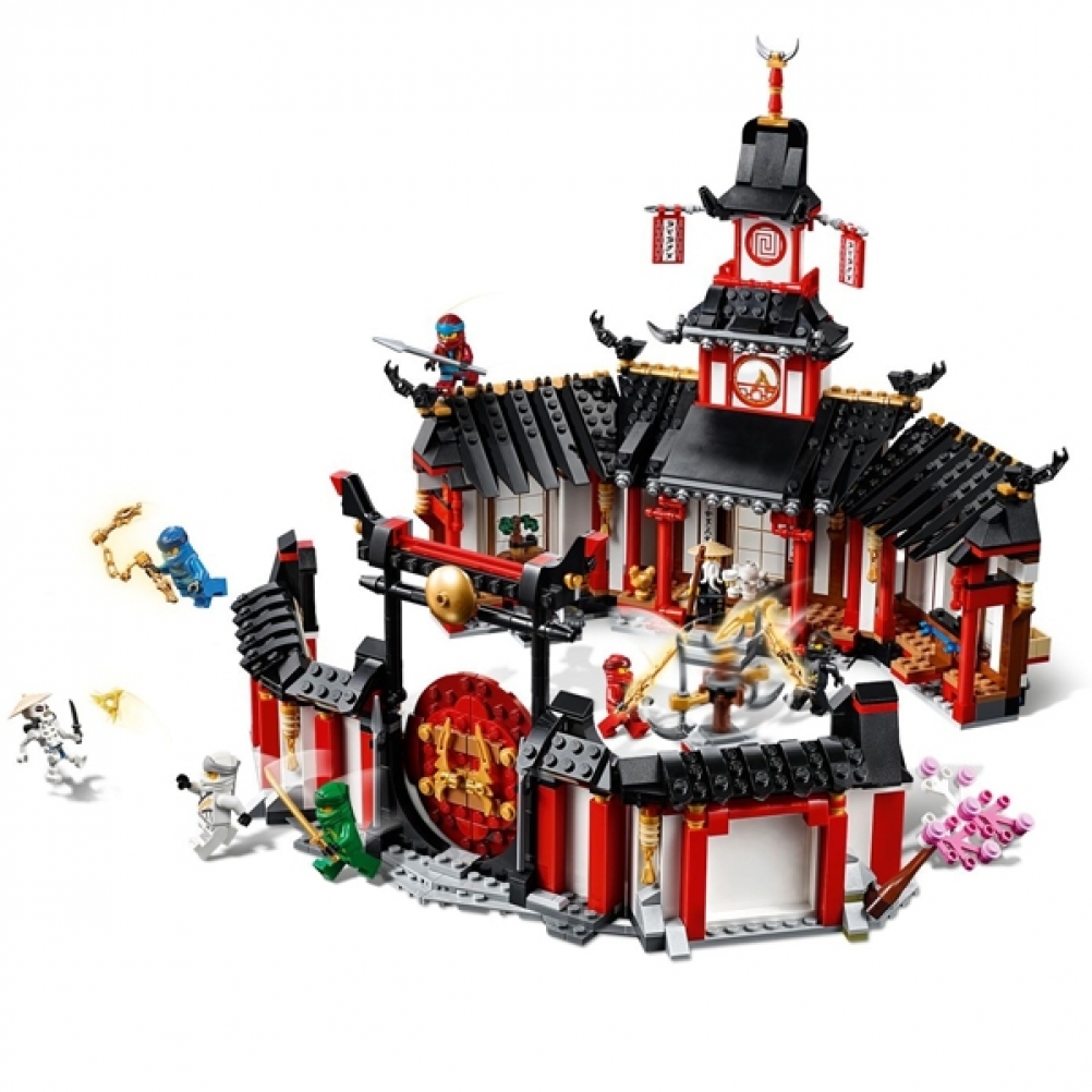 Il Monastero Spinjitzu può essere aperto per facilitare il gioco al suo interno ed è dotato di cancello apribile, torre, sala da tè con 2 posti e una trappola nascosta con coltello azionato a leva, stazione di addestramento rotante e un bonsai costruibile; funzione di trappola per polli e adesivi murali storici di LEGO® NINJAGO®.