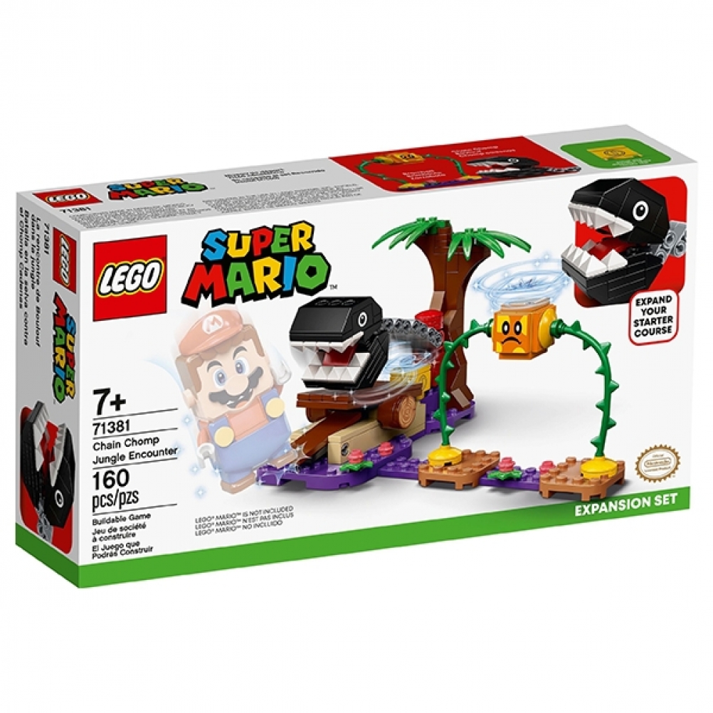 I bambini possono aggiungere una sfida saltellante nella giungla di Soda al loro corso iniziale LEGO® Super Mario ™ e competere con gli amici con questo divertente set di espansione Incontro nella giungla con morsi a catena (71381).
