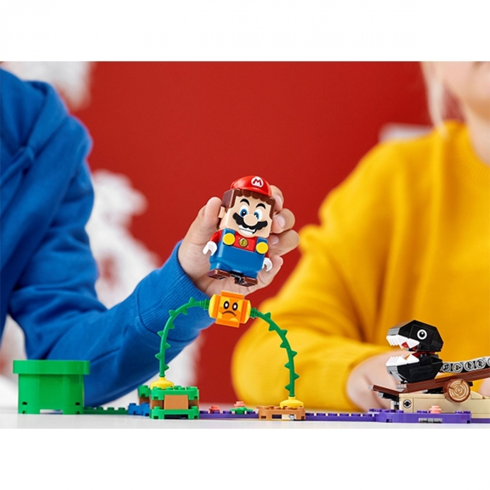 Il set contiene i personaggi Bramball e Chain Chomp, compatibili con LEGO® Mario ™ (personaggio non incluso), da sconfiggere, una piattaforma di salto per mettere fuori gioco il Chain Chomp e un Coin Block che offre ai giocatori premi extra in monete digitali. (Nota: per il gioco interattivo è necessario il set del corso iniziale 71360).