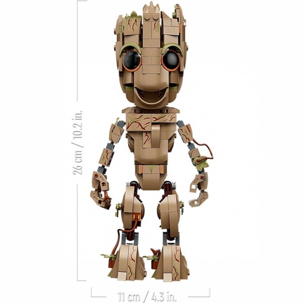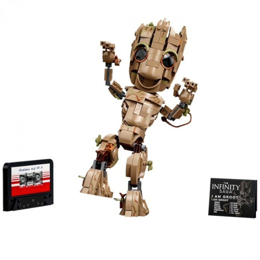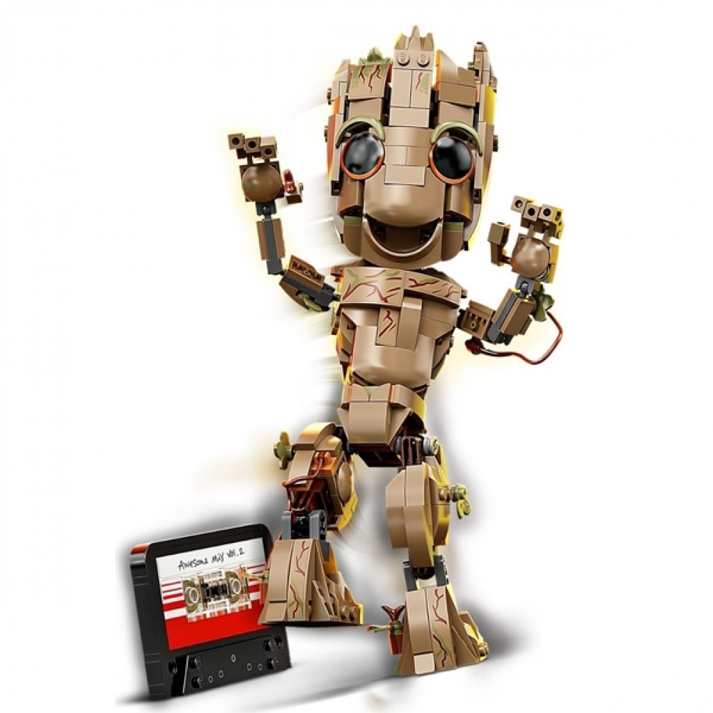• Personaggio Marvel leggendario: i bambini costruiscono la propria versione di Baby Groot del film Guardiani della Galassia Vol. 2 di Marvel Studios. Il set include anche una musicassetta finta e una targhetta espositiva