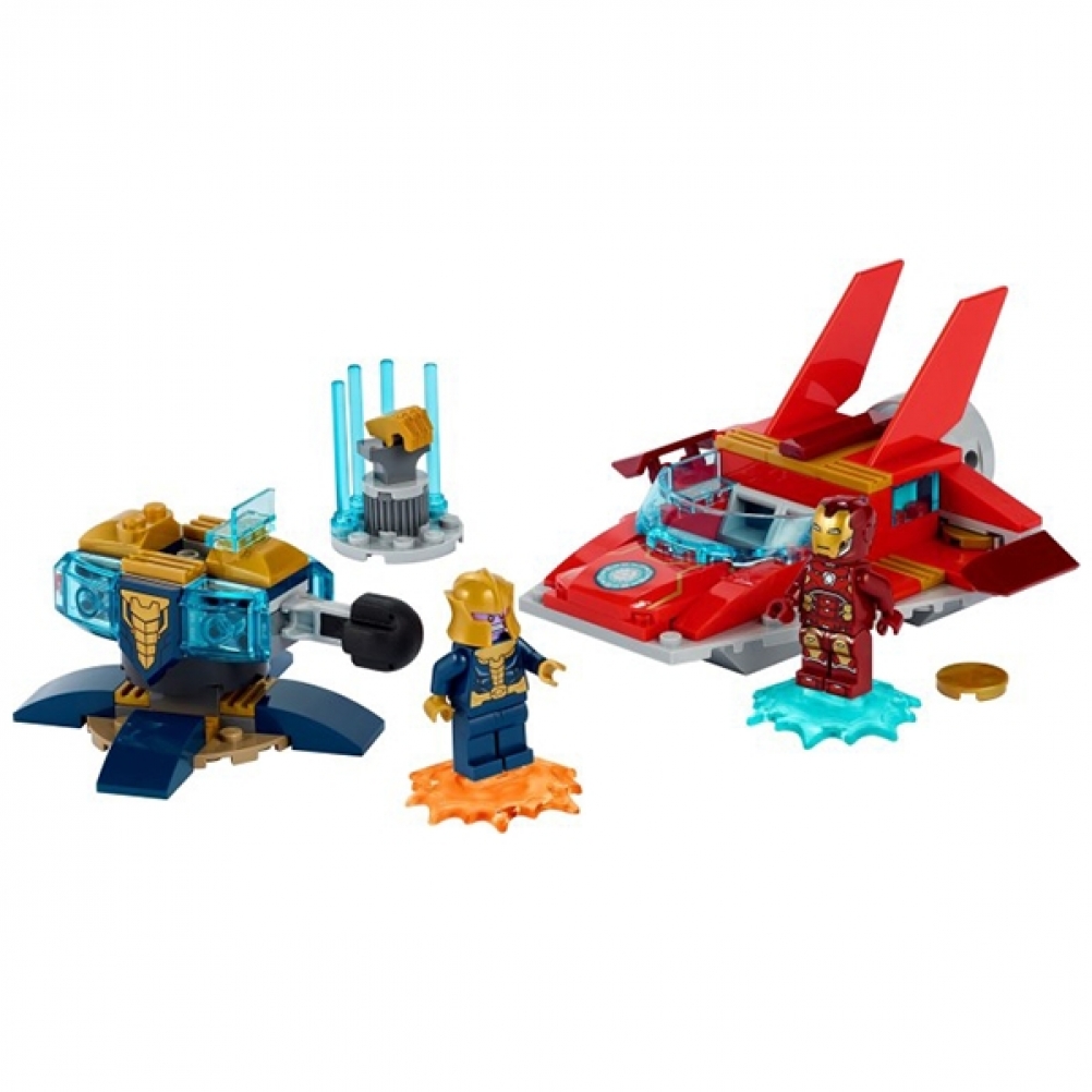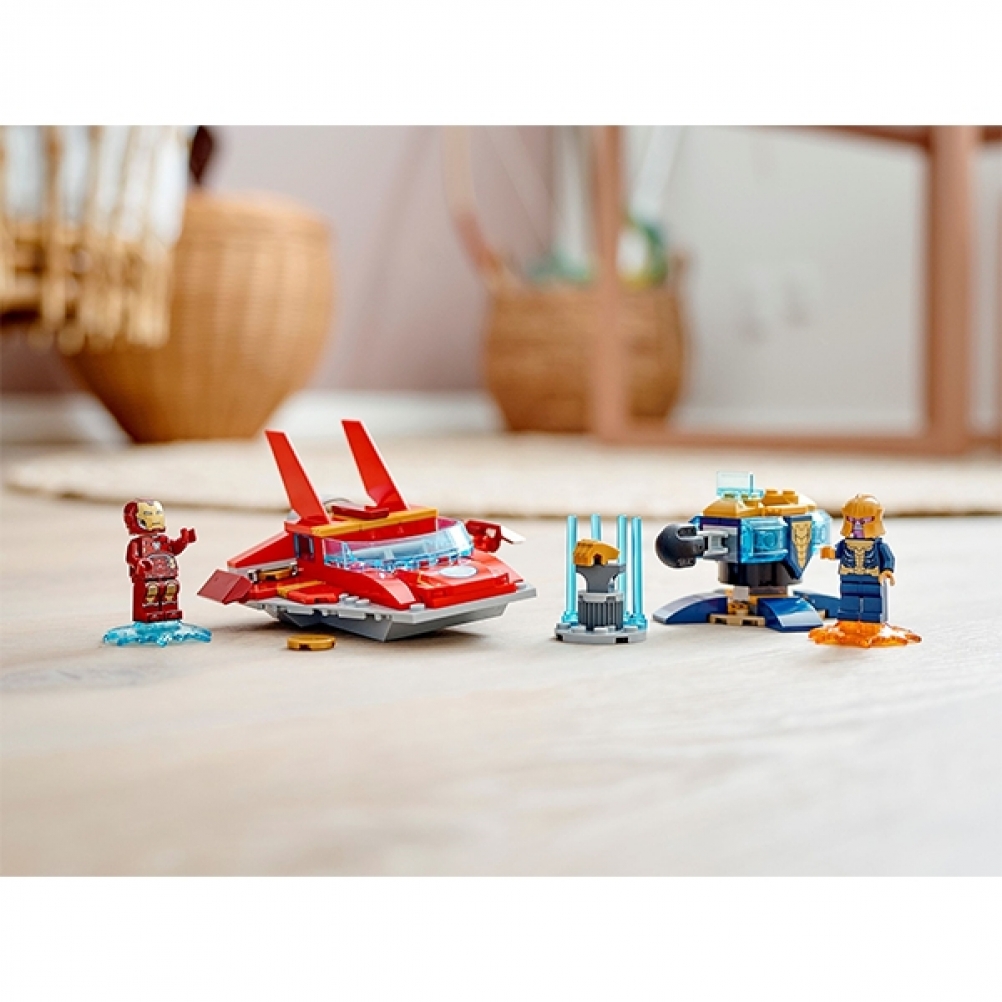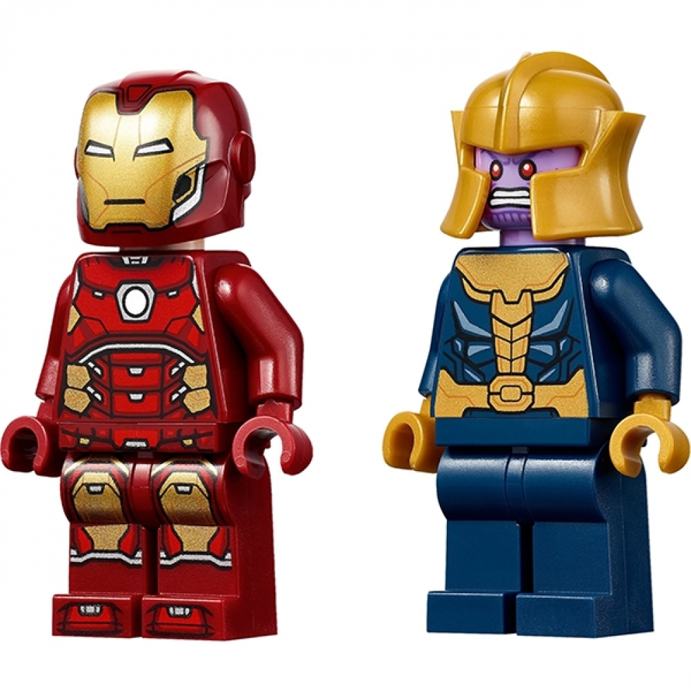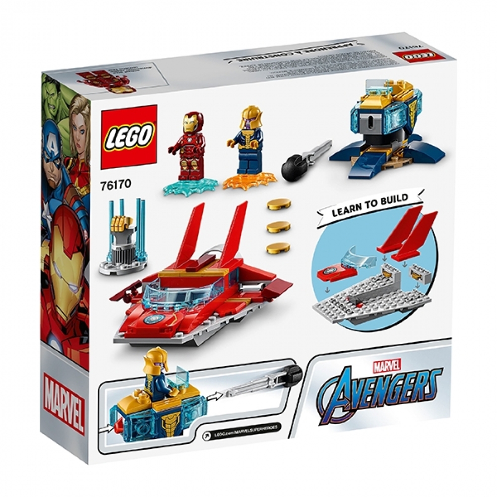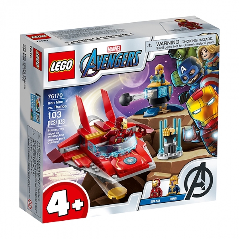 LEGO® Marvel Avengers: Iron Man contro Thanos (76170) è un giocattolo da supereroi iconico, progettato per favorire lo sviluppo di immaginazione, destrezza e sicurezza nei piccoli costruttori dai 4 anni in su. Include le minifigure di Iron Man e Thanos, un jet aerodinamico, una torretta con mitragliatrice e 2 supporti energetici, uno per Iron Man e uno per Thanos.