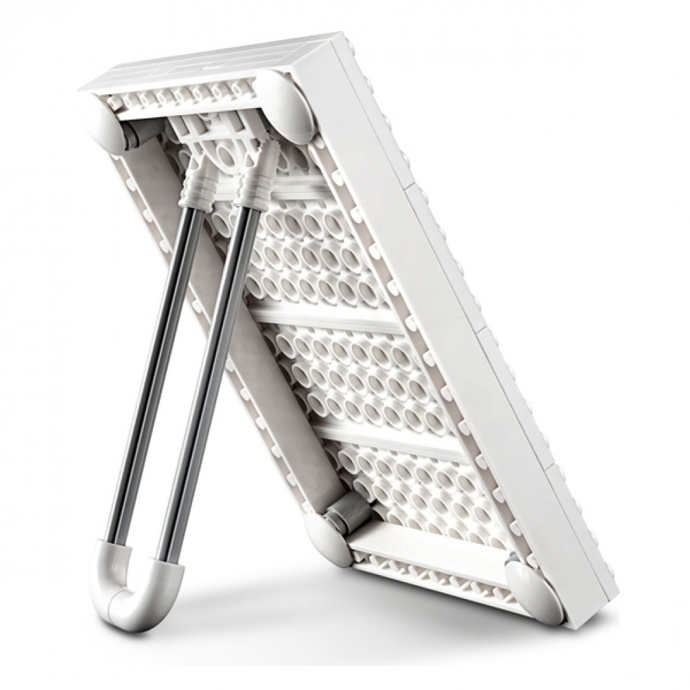 Una volta completata, può essere appesa a una parete con il gancio integrato o esposta su un piano utilizzando la base 12x16 di supporto che mantiene tutti i mattoncini LEGO in posizione.