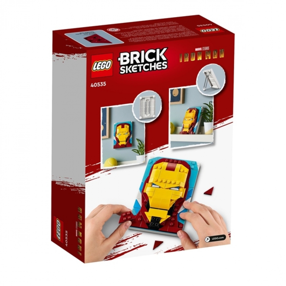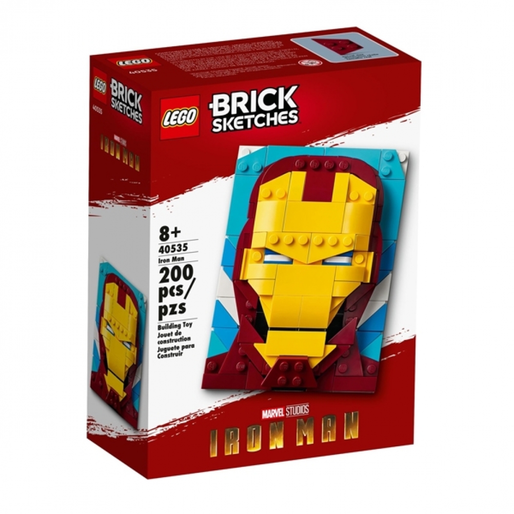 LEGO® Brick Sketches Iron Man (40535) permette ai fan di Iron Man dagli 8 anni in su di costruire un’opera d’arte che raffigura questo supereroe.