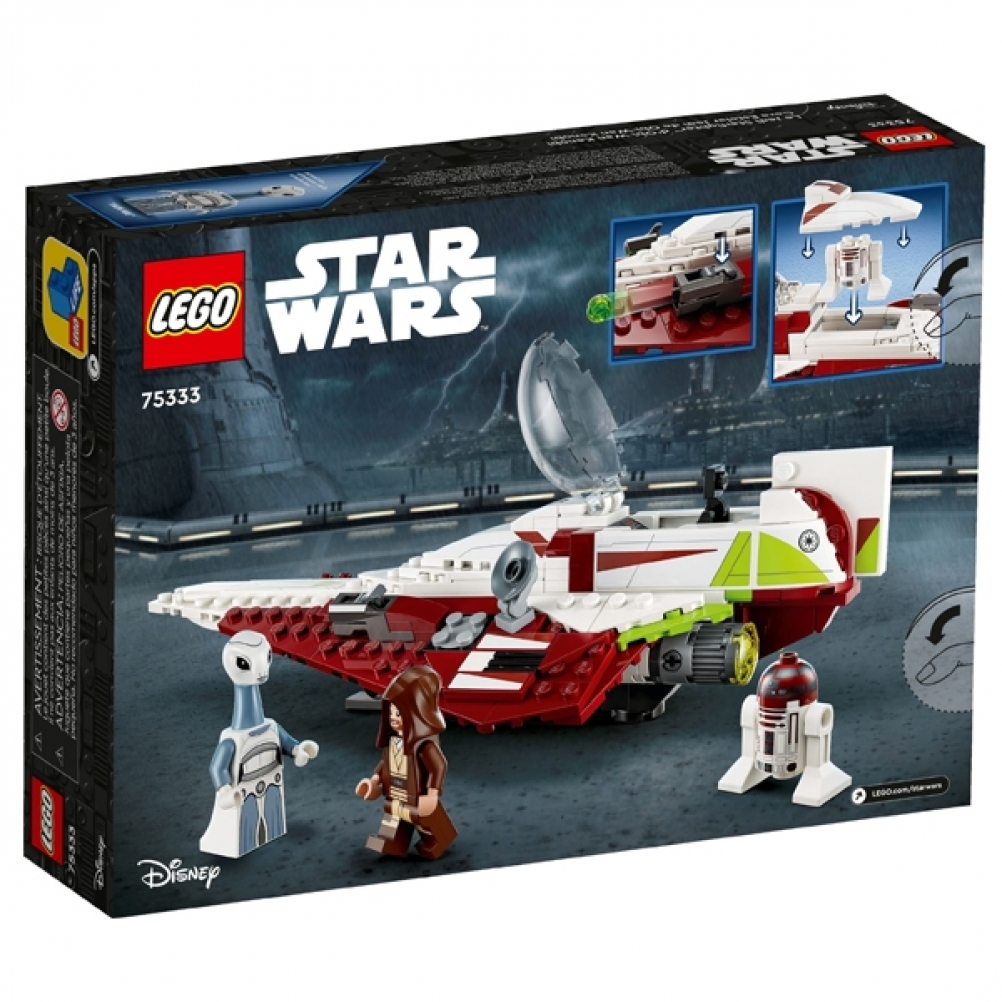 Un fantastico regalo per i bambini e le bambine dai 7 anni in su, questo set è caratterizzato da un abitacolo apribile per la minifigure di Obi-Wan, 2 shooter, carrello di atterraggio retrattile, clip per stivare le spade laser e un punto di collegamento sull’ala per la testa di R4-P17.