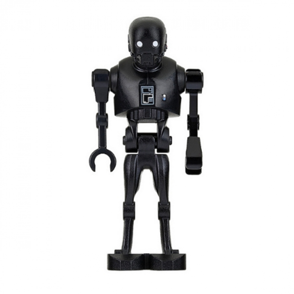 K-2SO è il carismatico e sarcastico droide imperiale riconvertito, apparso per la prima volta in Rogue One: A Star Wars Story. Questa minifigure LEGO lo rappresenta in dark bluish gray, con arti lunghi e snodati e un pannello argentato stampato sul torso. Il design slanciato cattura perfettamente la silhouette imponente del personaggio.