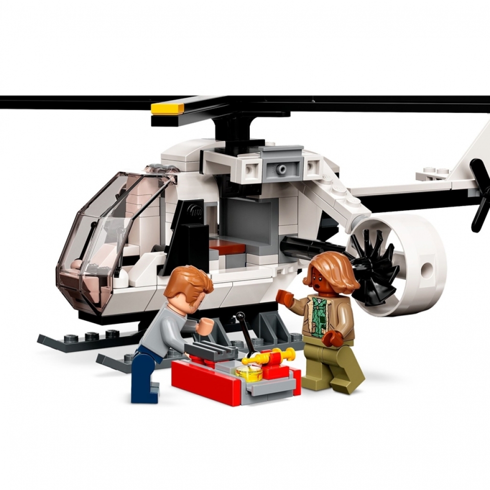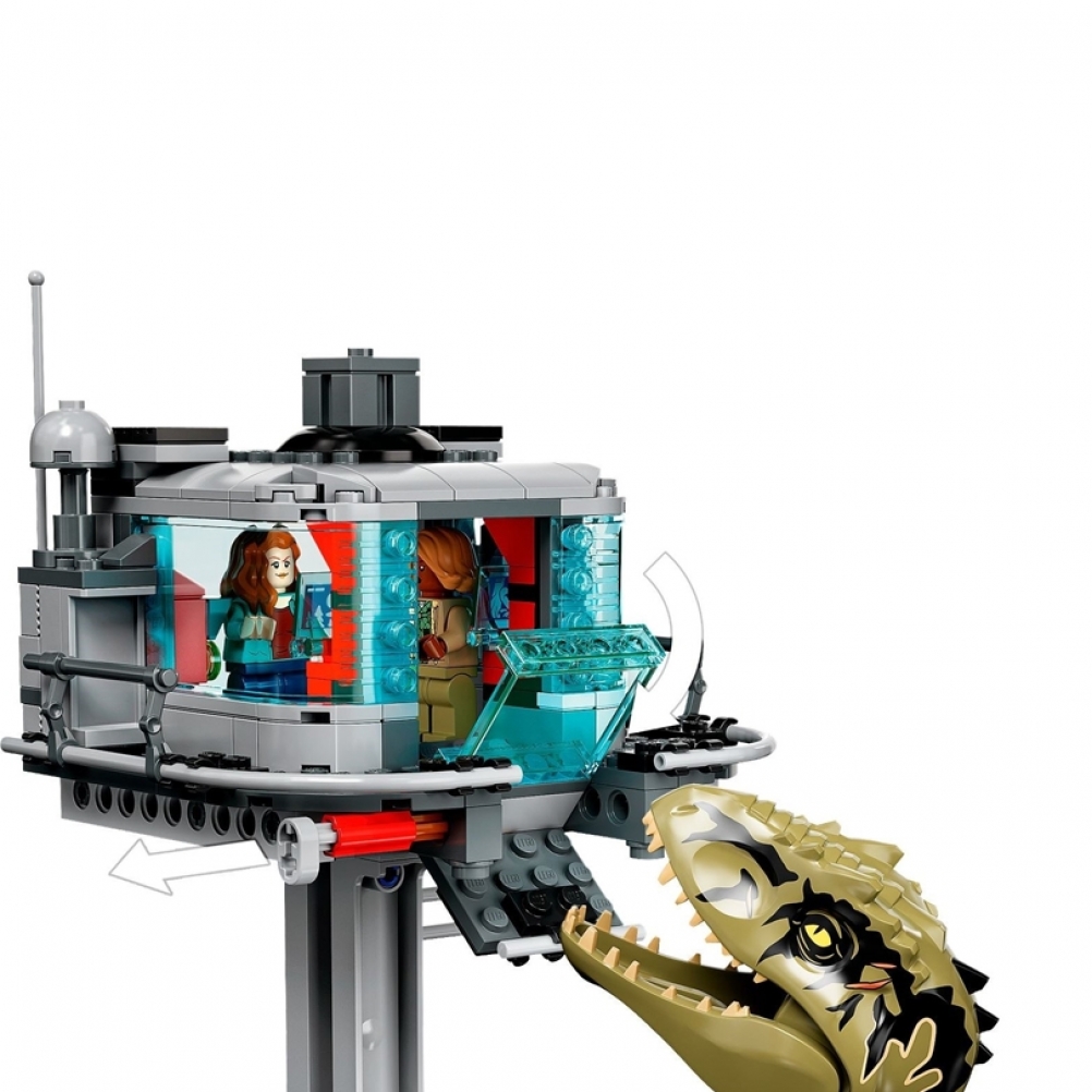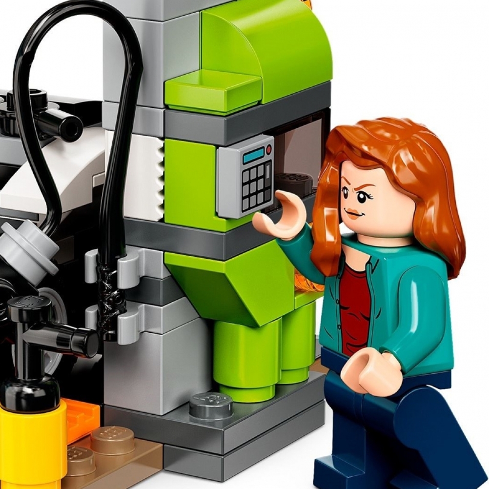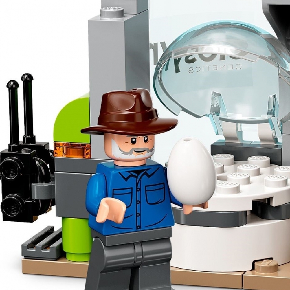 - 6 minifigure: Owen Grady, Claire Dearing, Dott. Alan Grant, Dott. Ellie Sattler, Kayla Watts e Dott. Henry Wu, più un Giganotosauro lungo 32 cm e a un Terizinosauro