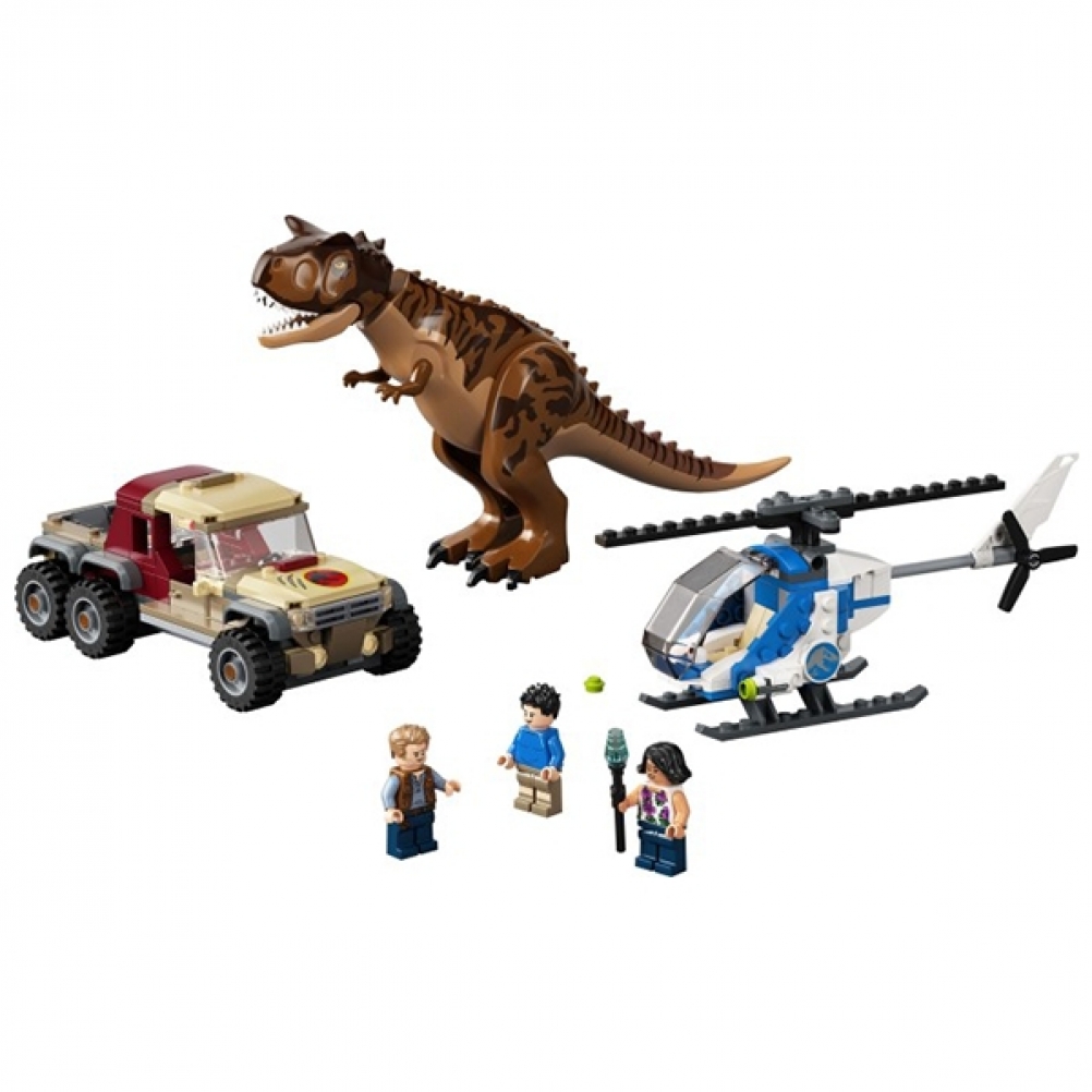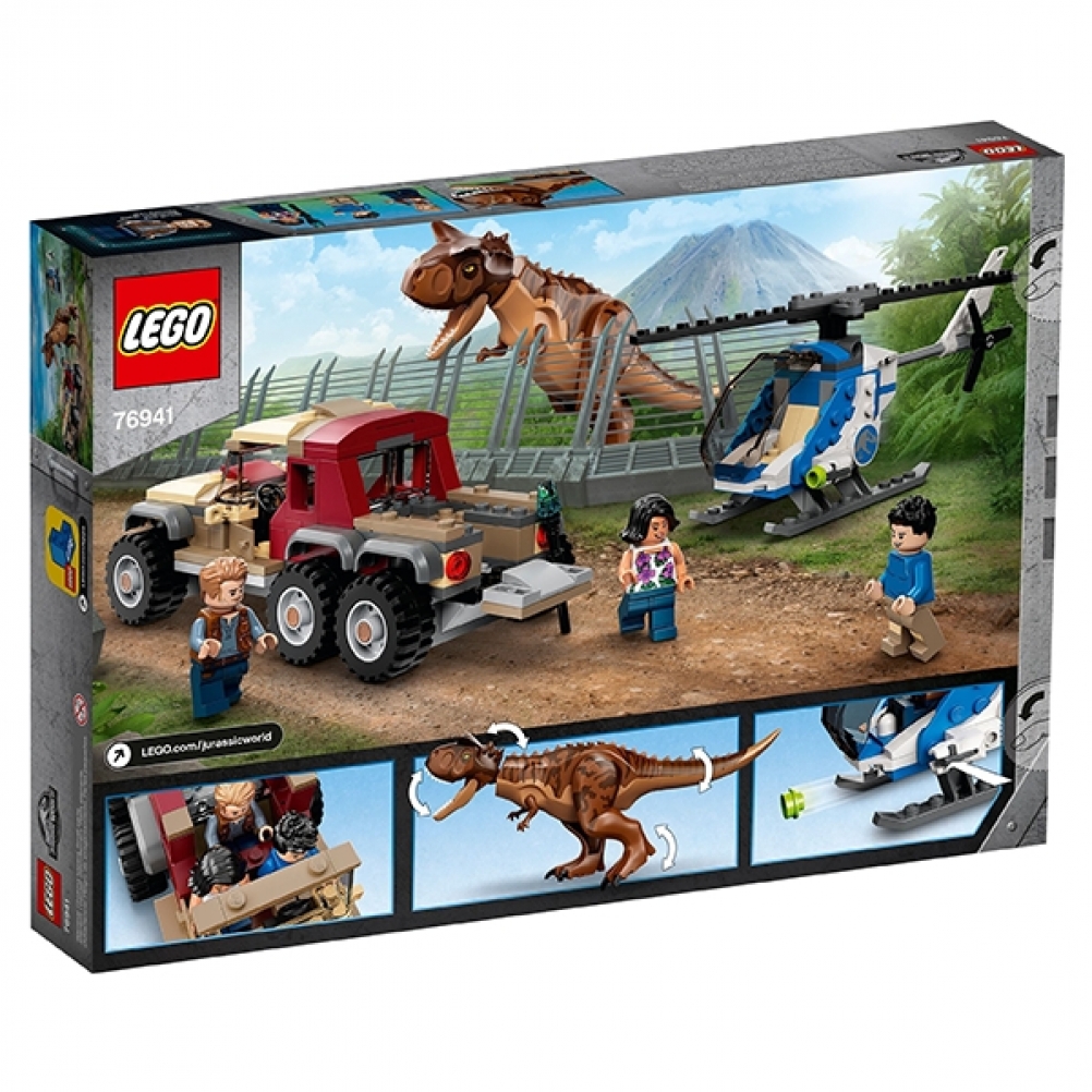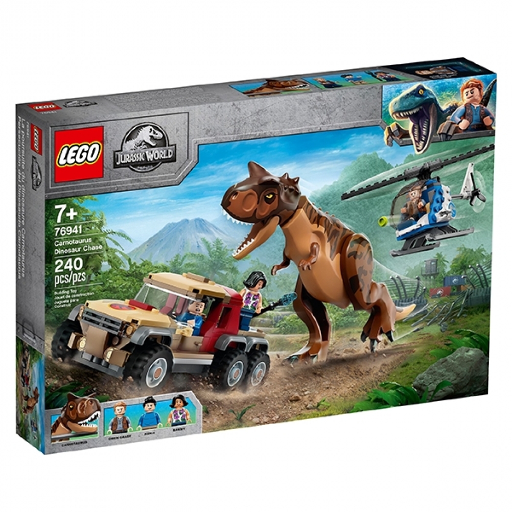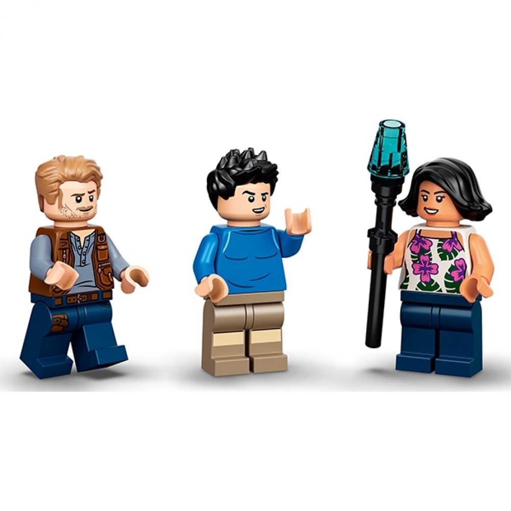 Include 3 minifigure: Kenji, Sammy e Owen Grady, oltre a un Carnotaurus giocattolo e a un taser per un gioco ricco di azione.