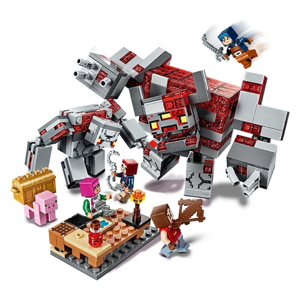 I bambini possono usare il mostro gigante e il golem pietrarossa per inventare azioni Minecraft™ completamente nuoveoppure imbracciare le armi e lanciarsi in battaglie basate sul gioco di ruolo e modificare i mostri snodabili per creare scene sempre diverse. Da non dimenticare, i numerosi e divertenti accessori disponibili, tra cui il bottino nascosto all’interno del salvadanaio a forma di maialino di Minecraft™.