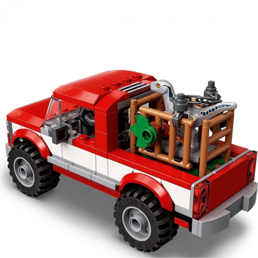 - Furgone, gabbia per dinosauri e motocicletta costruibili: la gabbia può essere posta sul retro del furgone ed è dotata di una funzione trappola per catturare Beta. C’è anche un elemento coscia di pollo da usare come esca per il dinosauro
