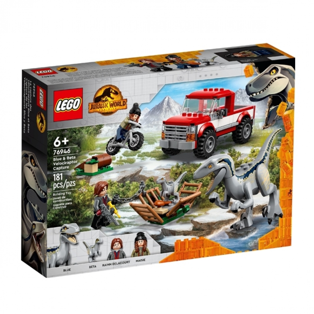 I bambini appassionati di dinosauri e veicoli d’azione ameranno questo set La cattura dei Velociraptor Blue e Beta LEGO® Jurassic (76946).