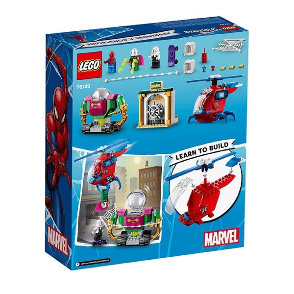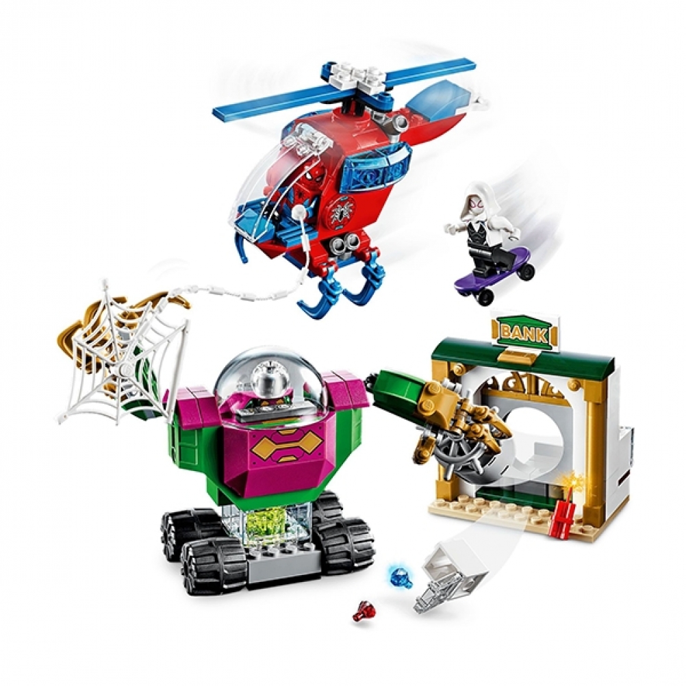 Questo fantastico giocattolo ricco di azione include Spider-Man, Ghost Spider e una minifigure di Mysterio, novità di gennaio 2020. Include anche l'elicottero di Spider-Man, il mech di Mysterio e una banca che si apre per rivelare un caveau giocattolo!