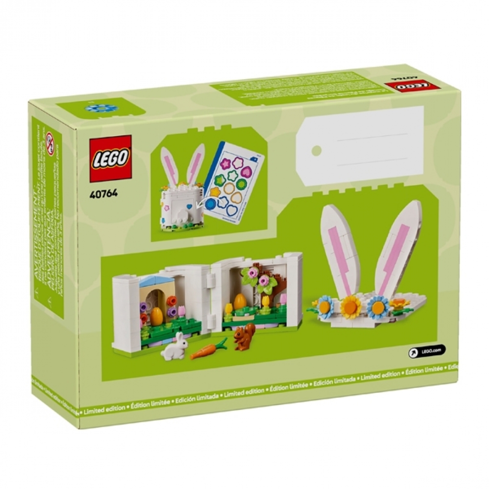 Festeggia la Pasqua con i bambini dai 7 anni in su e la famiglia con questo playset decorativo portatile per la casa La sorpresa del Coniglietto di Pasqua LEGO® (40764). L’animale giocattolo è dotato di una scatola con coperchio rimovibile, orecchie mobili e corona di fiori. La scatola si apre per rivelare una piccola scena di gioco con conigli e scoiattoli su una base girevole, oltre a oggetti primaverili e pasquali tra cui uova, fiori, un albero e una carota. Il set include anche adesivi per personalizzare il set da gioco portatile e dare vita al tuo coniglio!