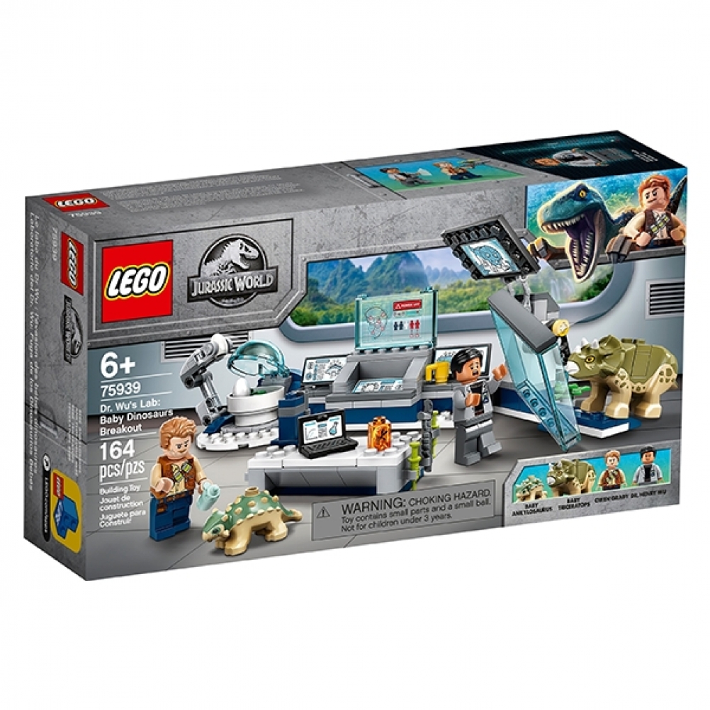I bambini possono fingere di creare nuove razze di dinosauri e aiutare Owen Grady a fermare le fughe di dinosauri con questo set di gioco LEGO® Jurassic World Dr.Wu's Lab: Baby Dinosaurs Breakout (75939). È dotato di una funzione di parete "in vetro" abbattibile, incubatore di uova di dinosauro in mattoni, microscopio e braccio robotico regolabile, elemento per laptop e pannello pop-up con un messaggio di "allarme" per ispirare il gioco creativo.