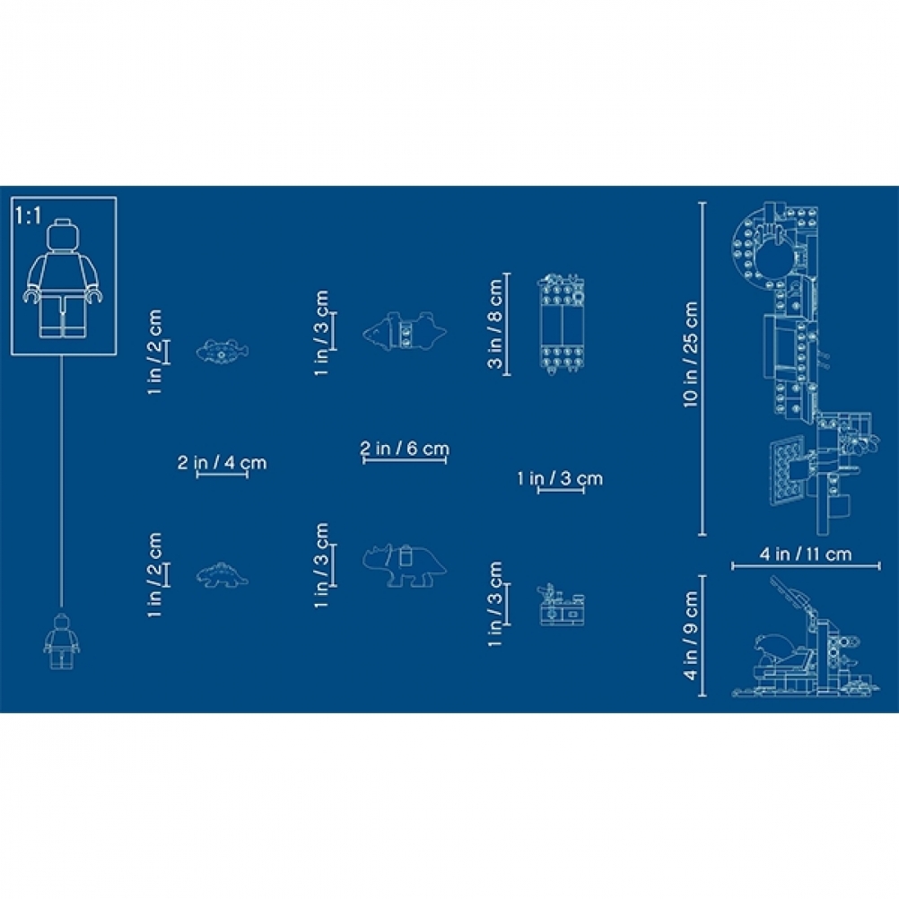 Il laboratorio misura 10 cm di altezza, 22 cm di larghezza e 8 cm di profondità - una dimensione compatta da riporre in una borsa per giocare in movimento - e si combina brillantemente con altri set LEGO® Jurassic World per ancora più opzioni di gioco.