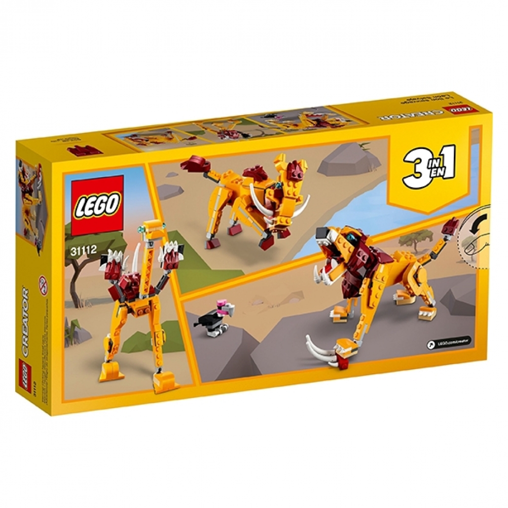 Questo set costruibile LEGO® Creator 3in1 Wild Lion (31112) alimenterà l'immaginazione dei bambini con 3 modelli in 1: un leone selvatico, uno struzzo e un facocero.