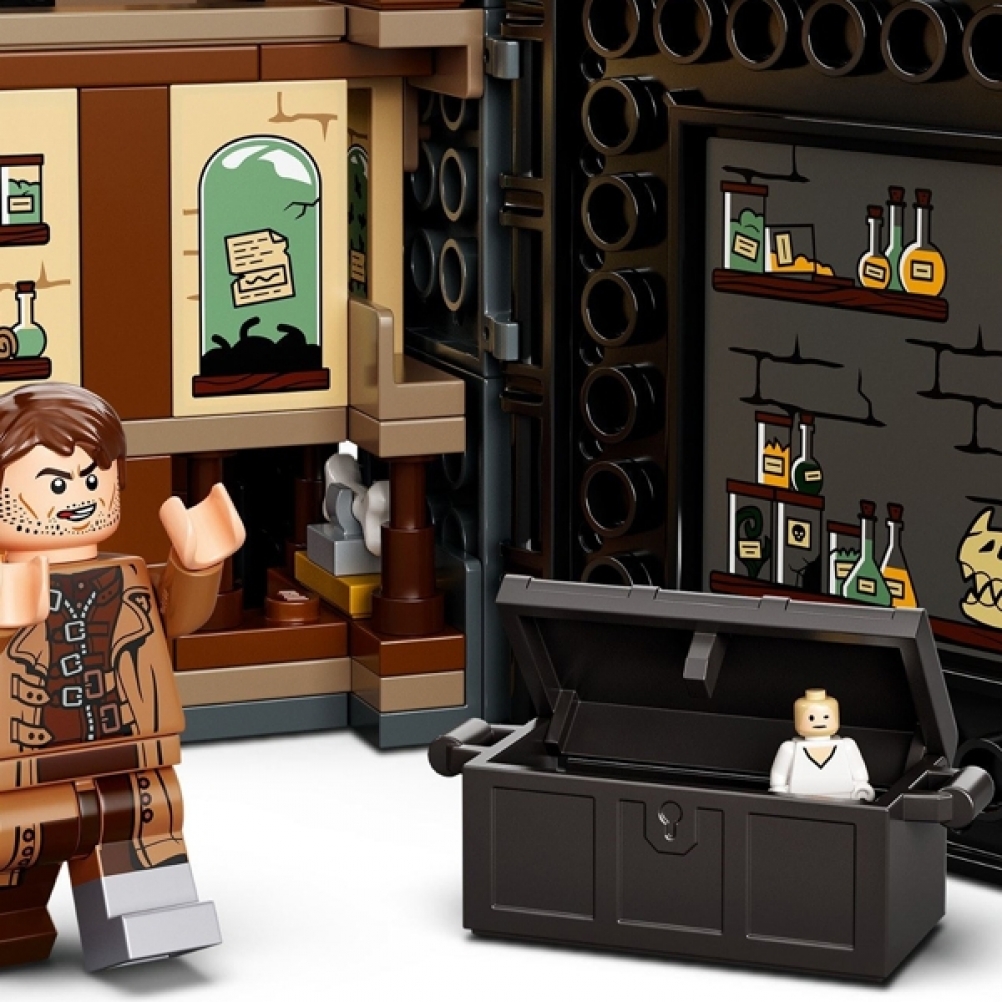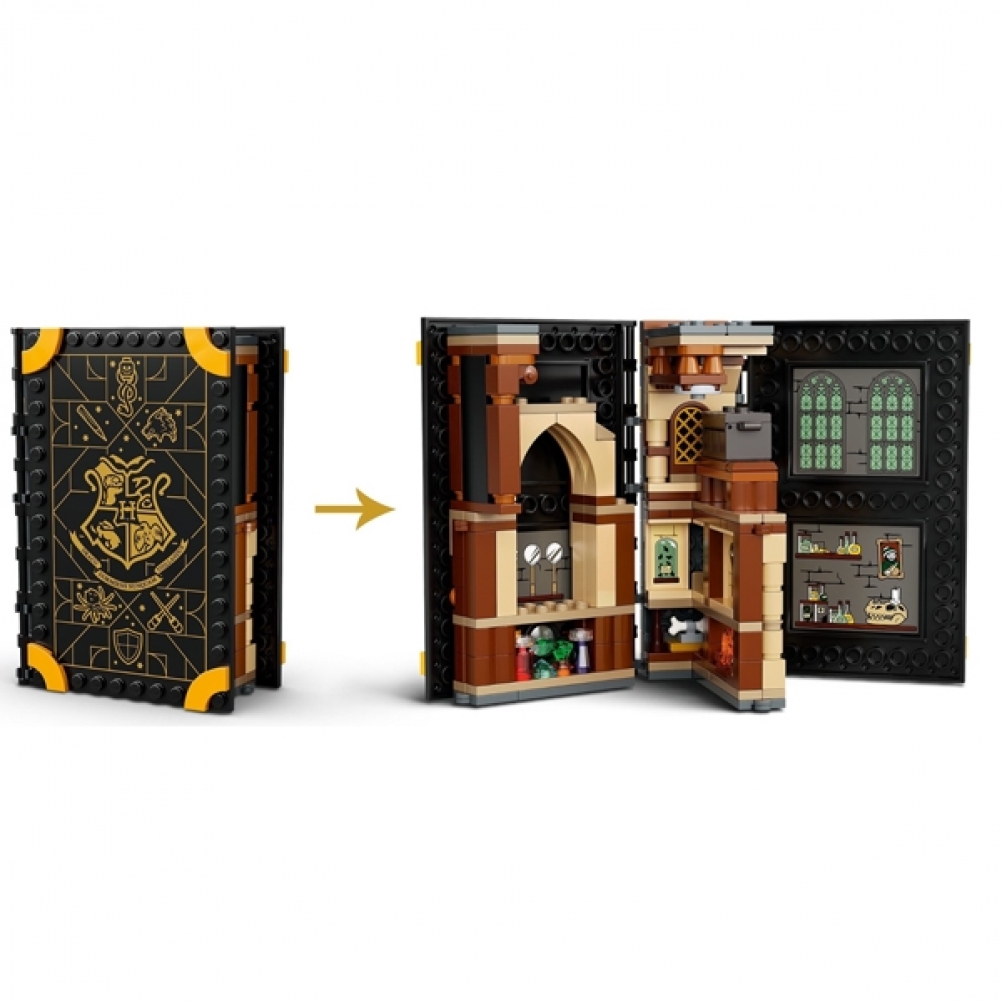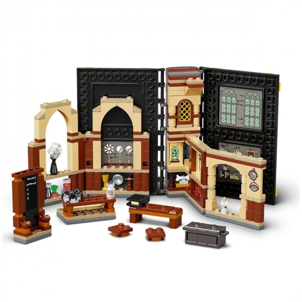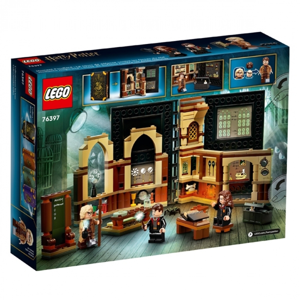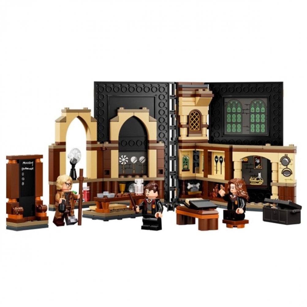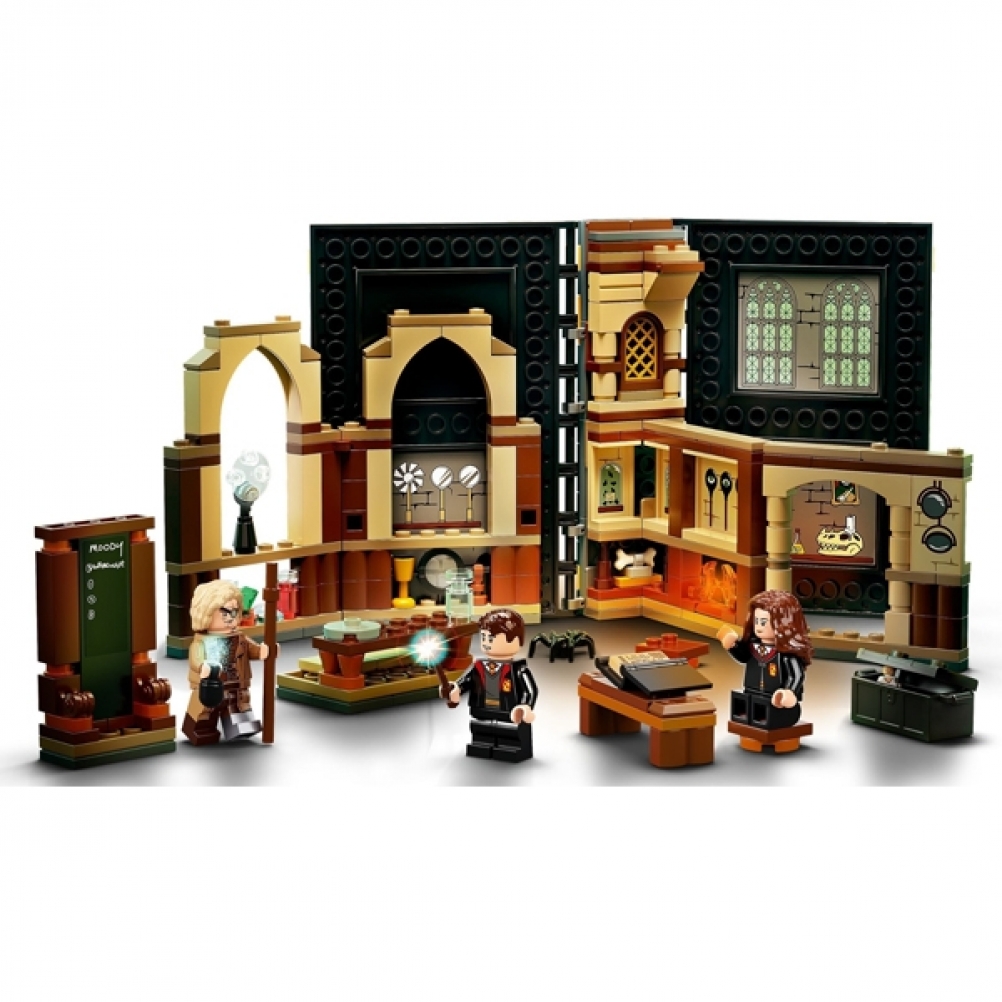 - Lezione a Hogwarts: nel set sono incluse le minifigure di Malocchio Moody, Hermione Granger e Neville Paciock, oltre a tanti accessori autentici, tra cui una lavagna, un baule, fiale di pozioni, una scrivania e sedie