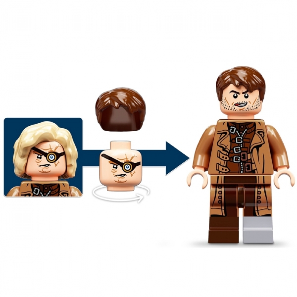 - Proprio come nei film: la minifigure di Malocchio Moody si trasforma in Barty Crouch junior girandone la testa e sostituendo i capelli. Nel baule c’è una microfigure decorata come il vero Malocchio Moody