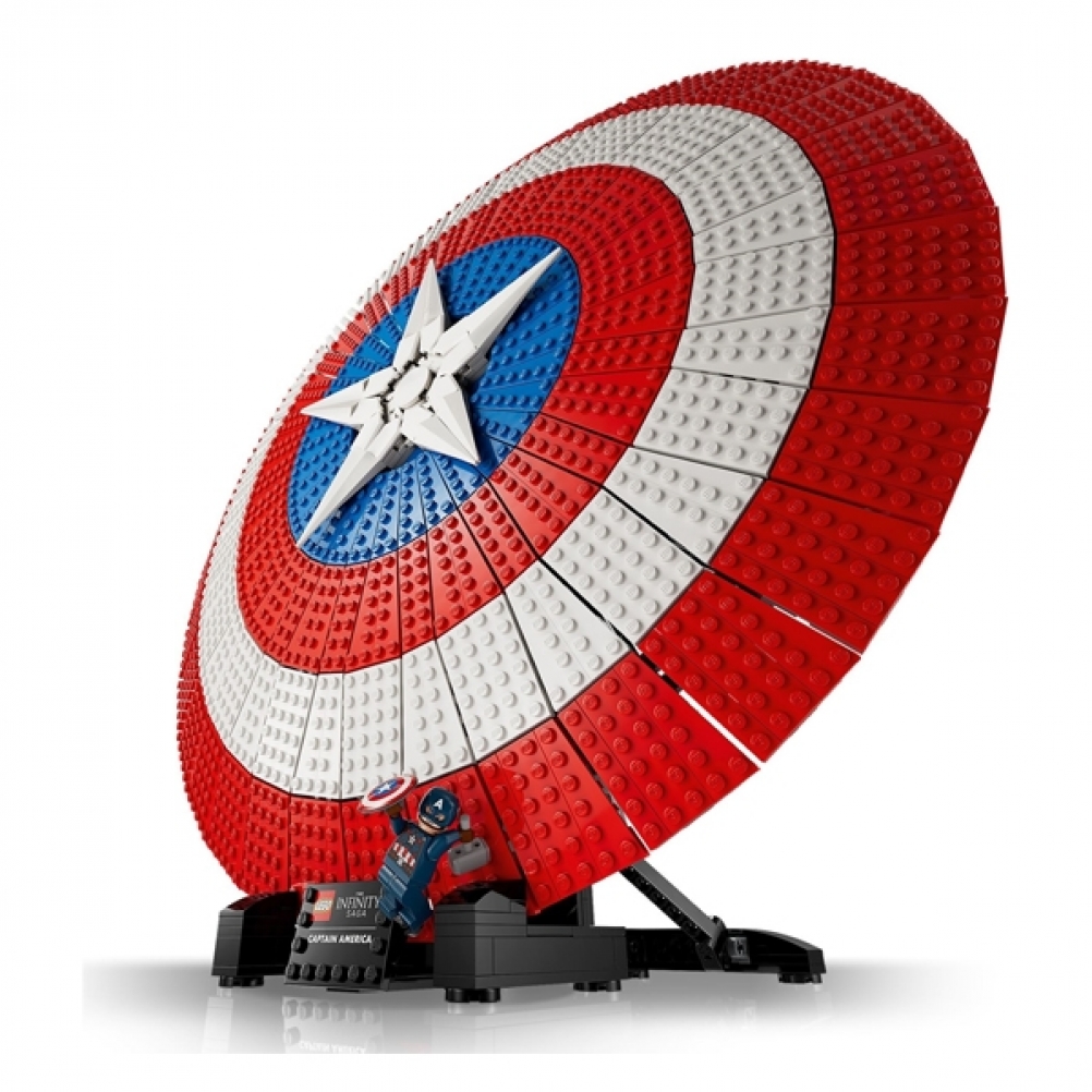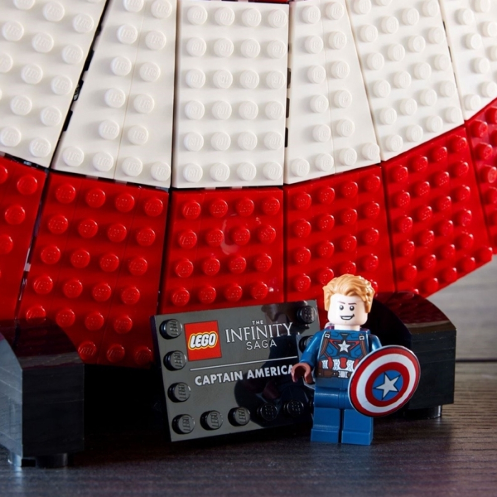• Pronto per l’esposizione: lo scudo poggia su un supporto che incorpora una targhetta e viene fornito con una minifigure di Captain America con il proprio scudo e il martello di Thor, Mjölnir