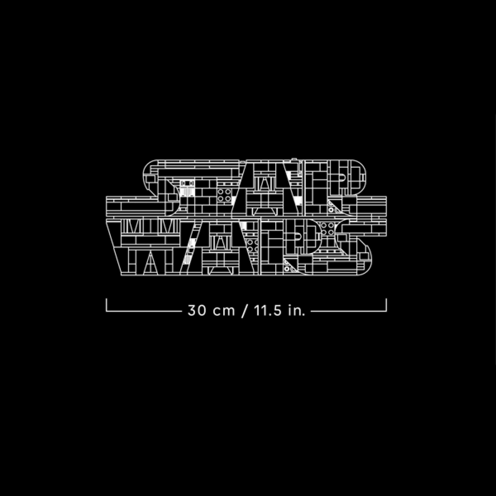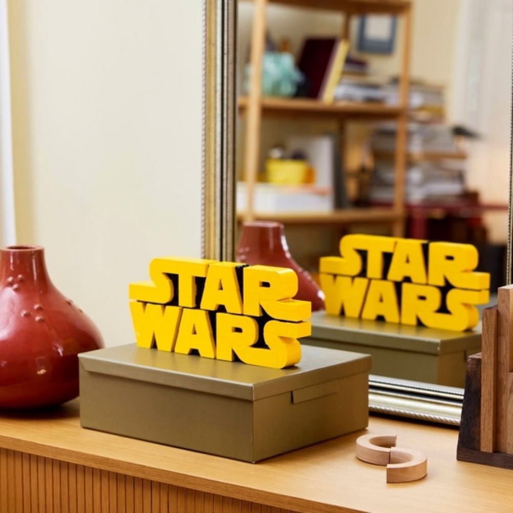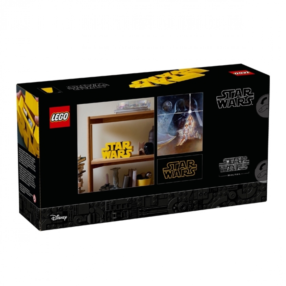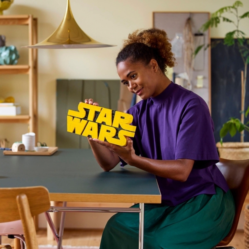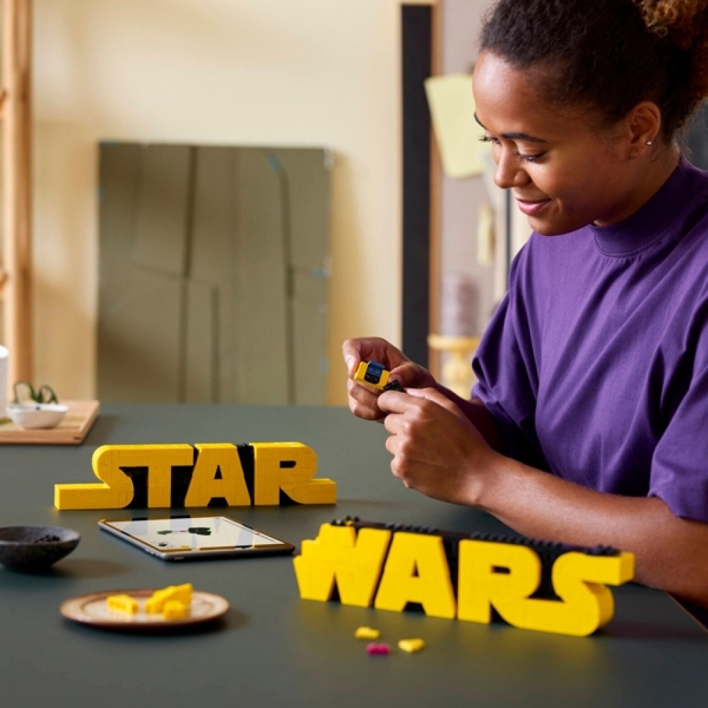 - Esplora i dettagli: questo Logo Star Wars™ presenta i classici dettagli in greebling LEGO® nelle aree nere tra le lettere gialle e c’è una piccola sorpresa nella “T” di Star Wars