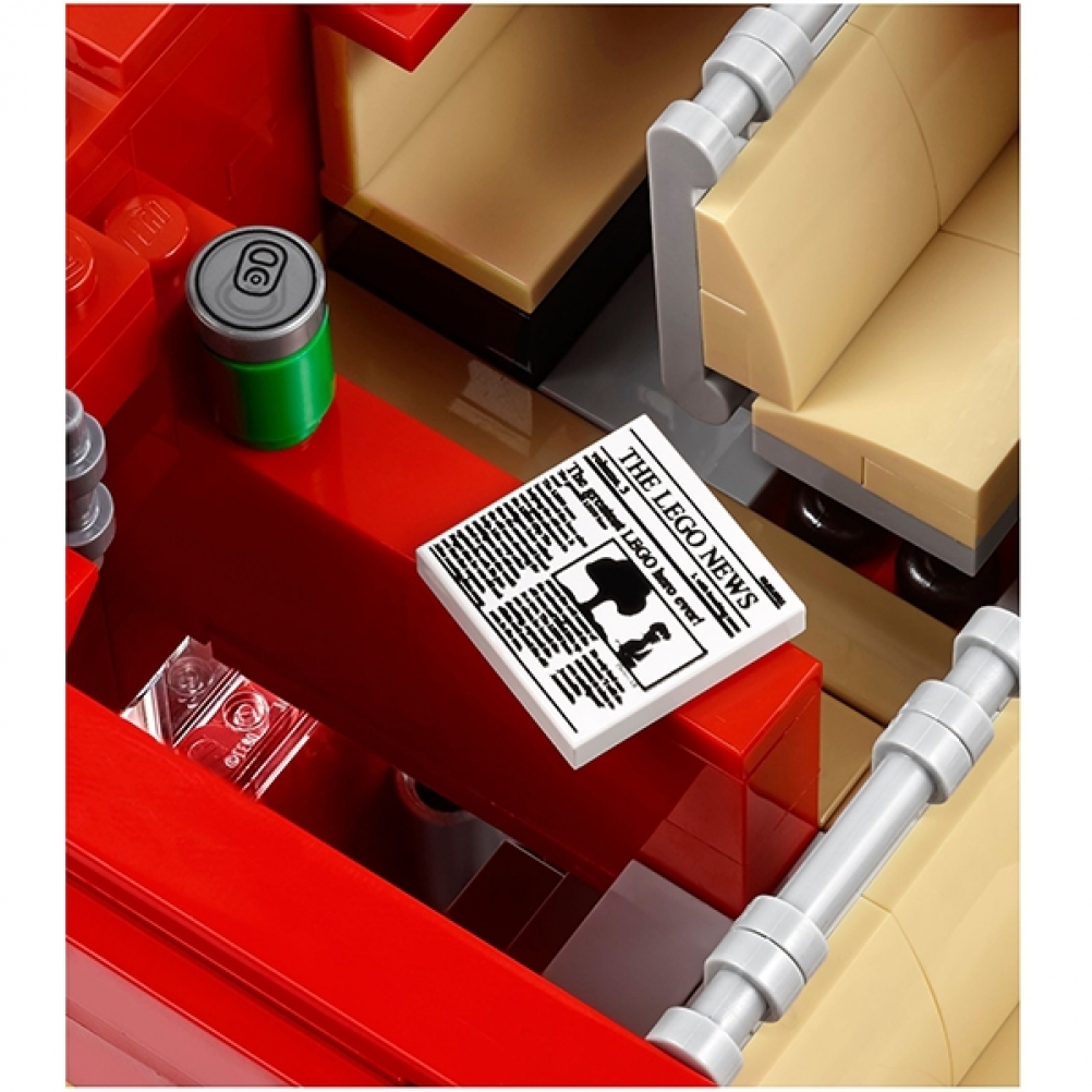 Ammira l’iconico design di questo affascinante autobus a due piani di Londra, ricco di autentici dettagli, tra cui la brillante livrea rossa, il parabrezza panoramico, gli pneumatici con battistrada appositamente realizzati, display della destinazione e piattaforma di imbarco posteriore aperta con reggimano verticale, cestino dei biglietti usati, estintore e una scala che porta al piano superiore panoramico. Le funzioni includono il cofano apribile con motore, cabina di guida dettagliata con una porta scorrevole e tetto e ponte superiore rimovibili per accedere all’interno particolareggiato dotato di sedili logori e ulteriori dettagli originali, tra cui un ombrello dimenticato, un giornale, una lattina vuota e gomma da masticare. Sono anche incluse etichette stampate con poster reversibili di pubblicità degli anni ‘50 o della Londra moderna. Questo modello LEGO® Creator Expert è stato progettato per offrire un’esperienza di costruzione stimolante e gratificante, con un pizzico di nostalgia e fascino d’epoca.