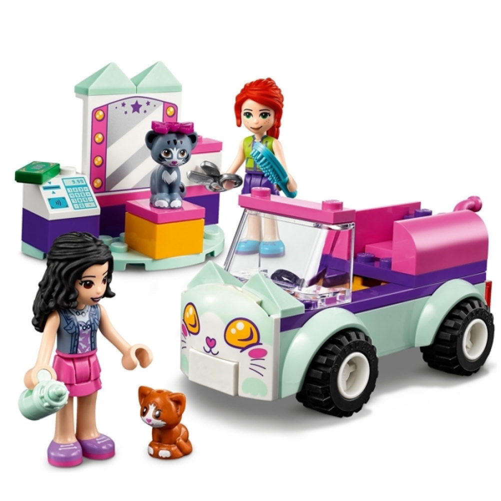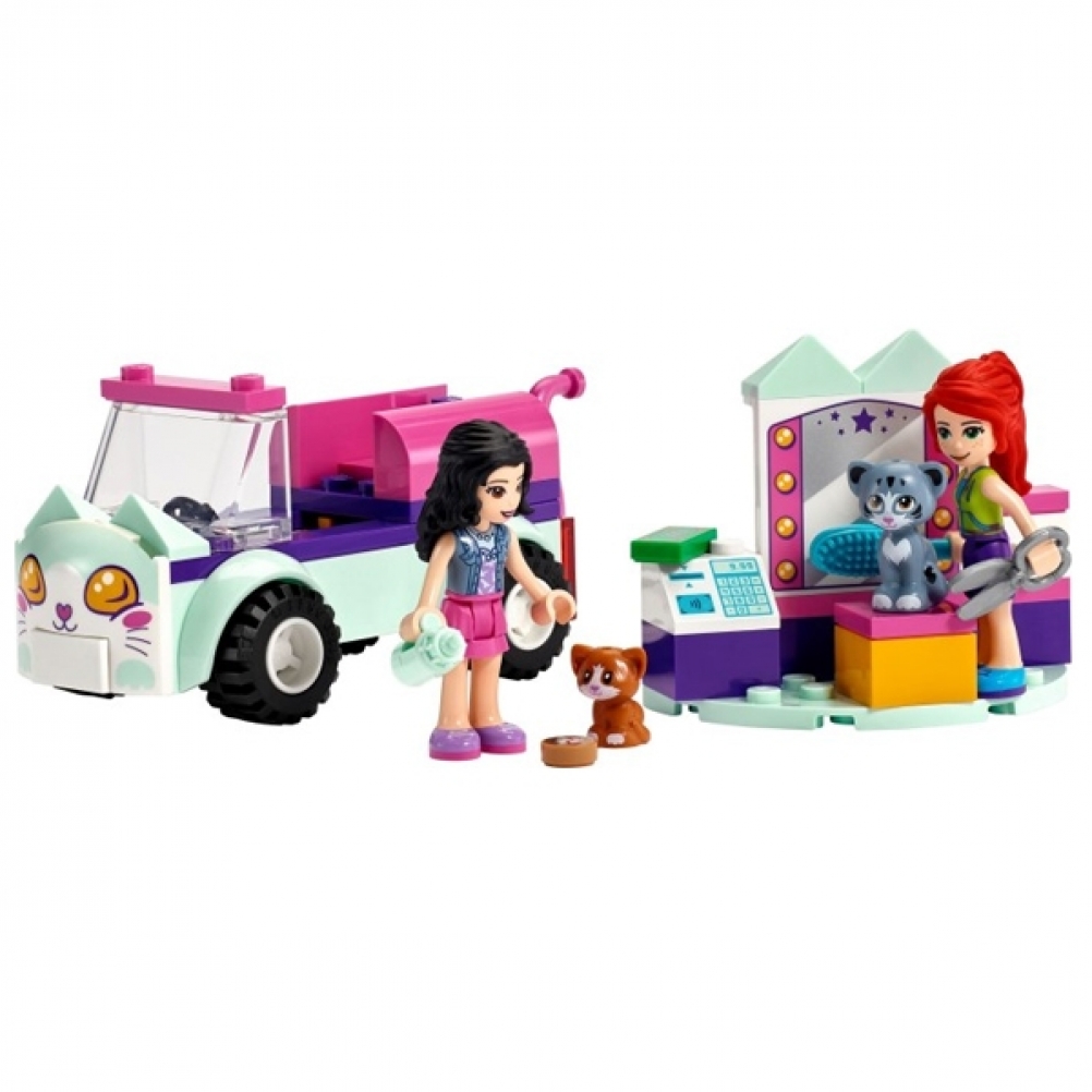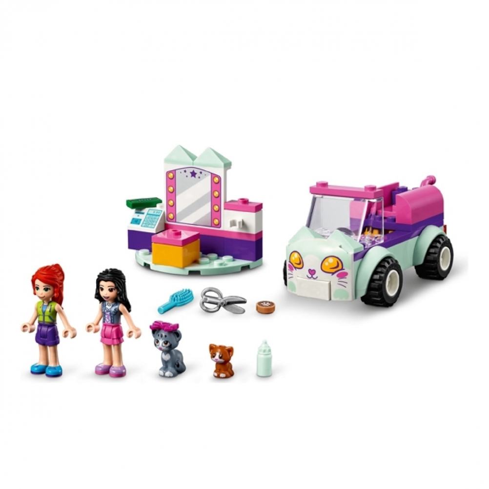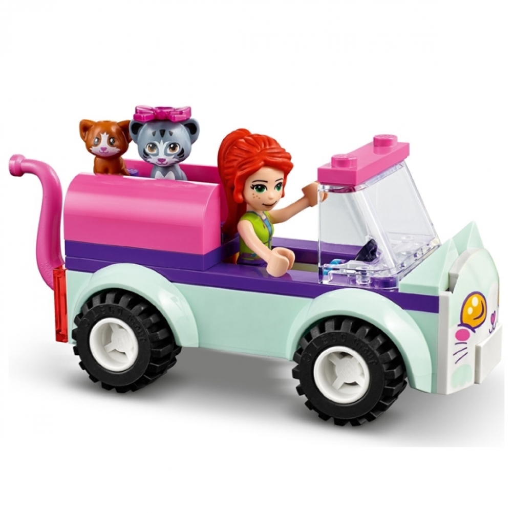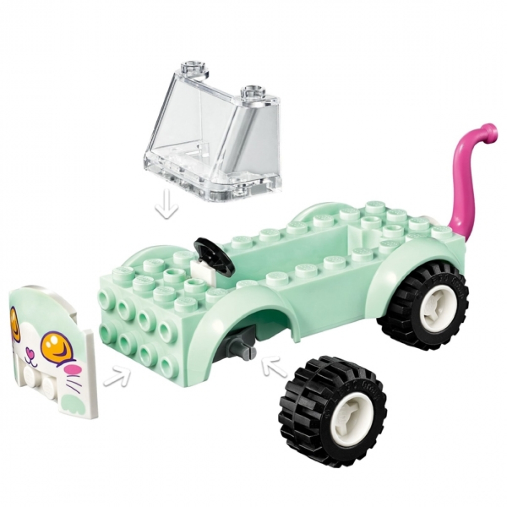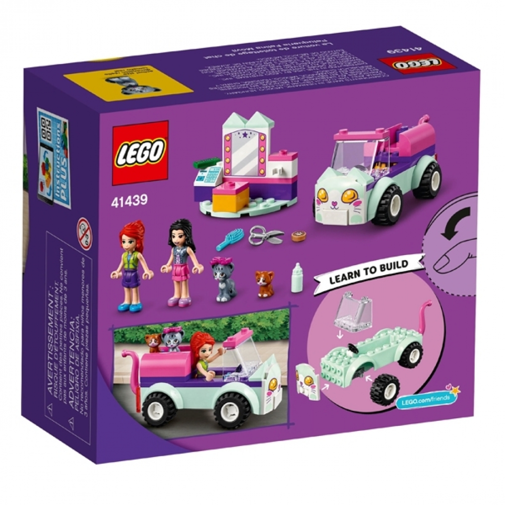 Con questo set potranno aiutare Emma e Mia di LEGO® Friends a caricare sull’auto i gatti e portarli al salone per un trattamento di bellezza.