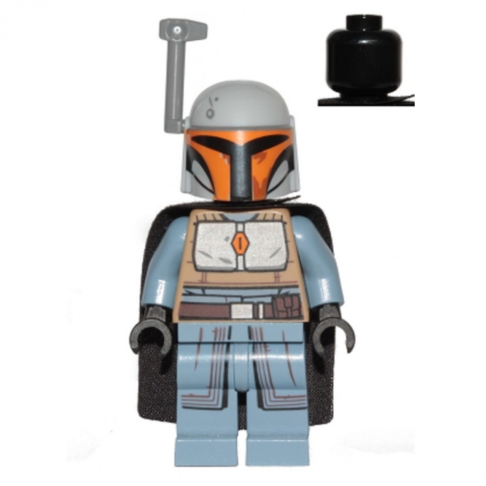 Indossa un torso e gambe grigio chiaro con dettagli stampati dell’armatura, completati da una cappa nera. Il casco grigio chiaro è dotato di antenna/rangefinder tipica dei Mandaloriani da combattimento.