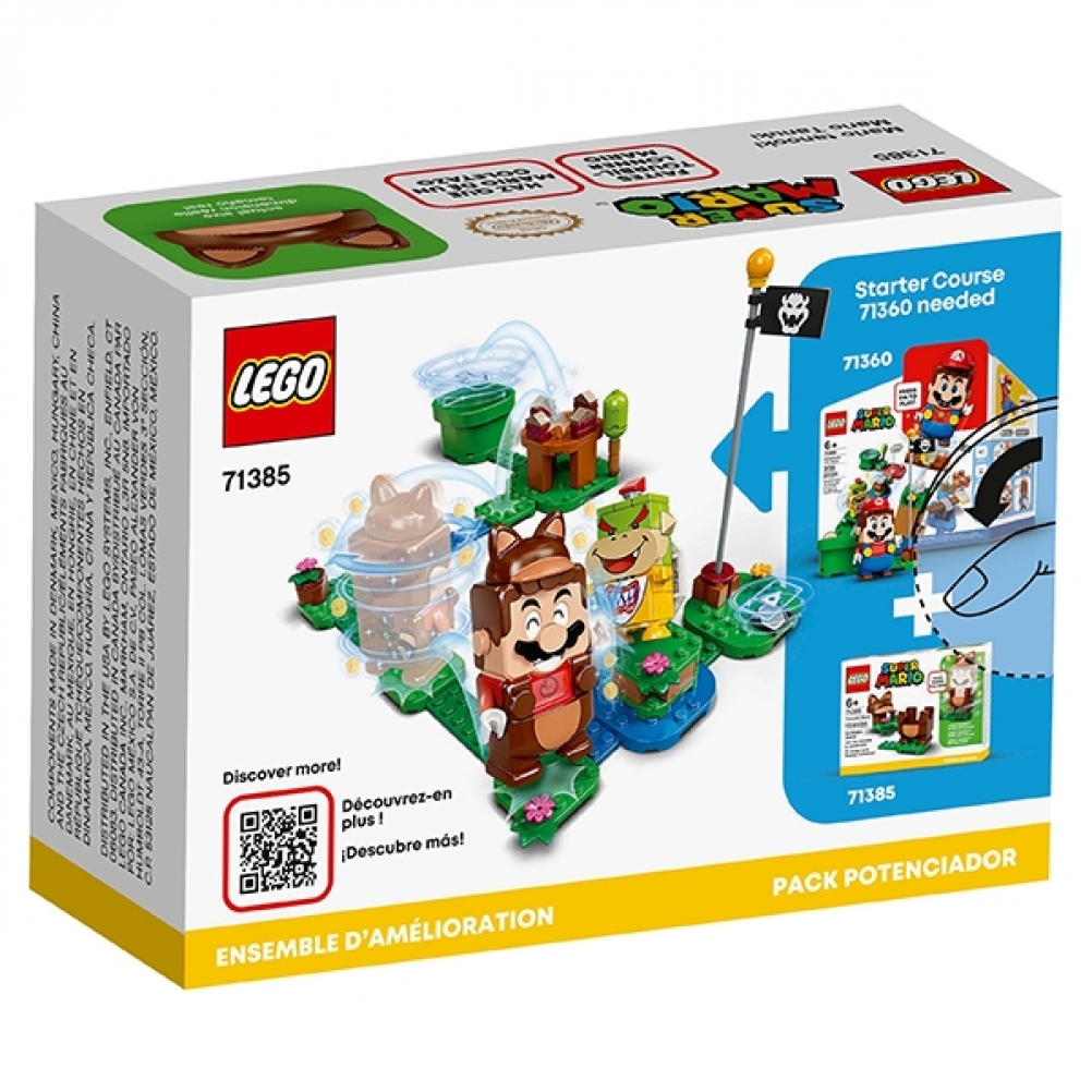 Potenzia le opzioni di gioco interattivo LEGO® Super Mario ™ per i bambini con questo Tanooki Mario Power-Up Pack (71385), contenente un costume interattivo per LEGO® Mario ™ (personaggio non incluso).