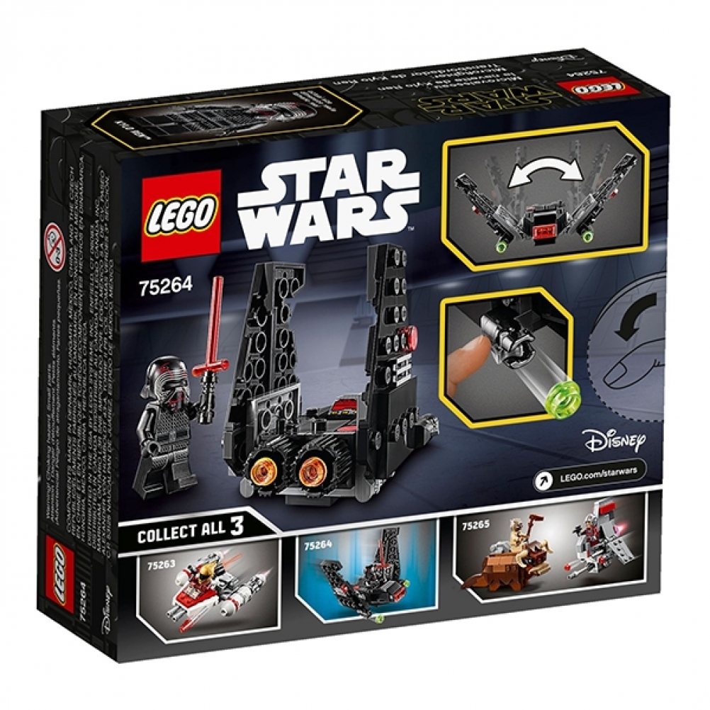 I bambini si divertiranno a giocare al cattivo pilotando lo shuttle, regolando l'assetto delle ali per il volo o la modalità di atterraggio e attaccando la Resistenza con2 shooter e la minifigure di Kylo Ren.