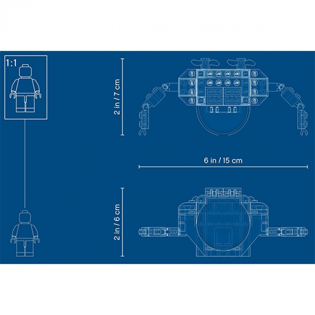 Assemblato, il sottomarino giocattolo (con i bracci di ispezione estesi) misura 6 cm di altezza, 20 cm di lunghezza e 6 cm di larghezza. E c’è tanto spazio nella cabina di pilotaggio a bolla per la minifigure del pilota!