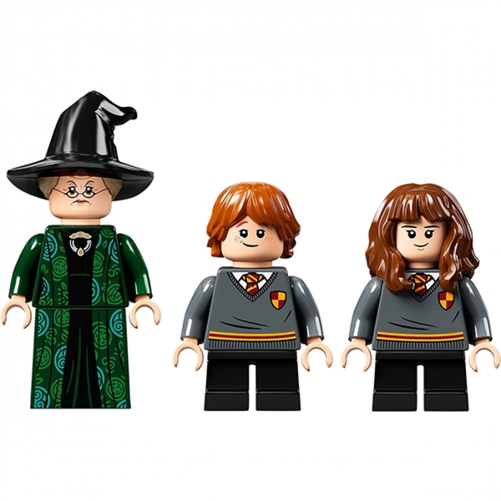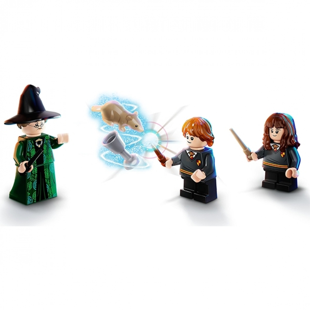 Include le minifigure di Hermione Granger™, Ron Weasley™ e della Professoressa McGranitt, una lavagna, 2 banchi, 2 sedie, un forziere, un armadietto, un libro degli incantesimi e numerosi accessori originali.
