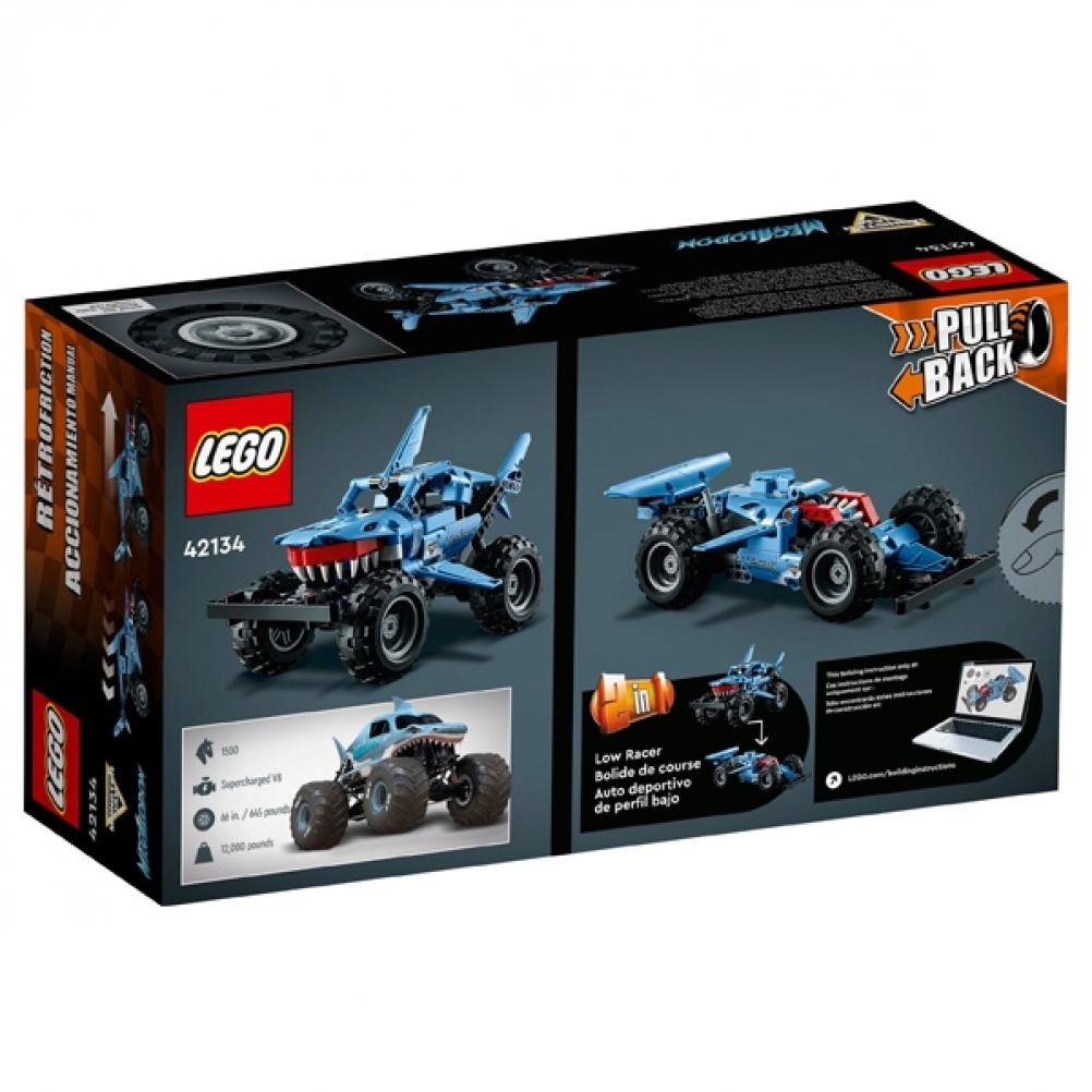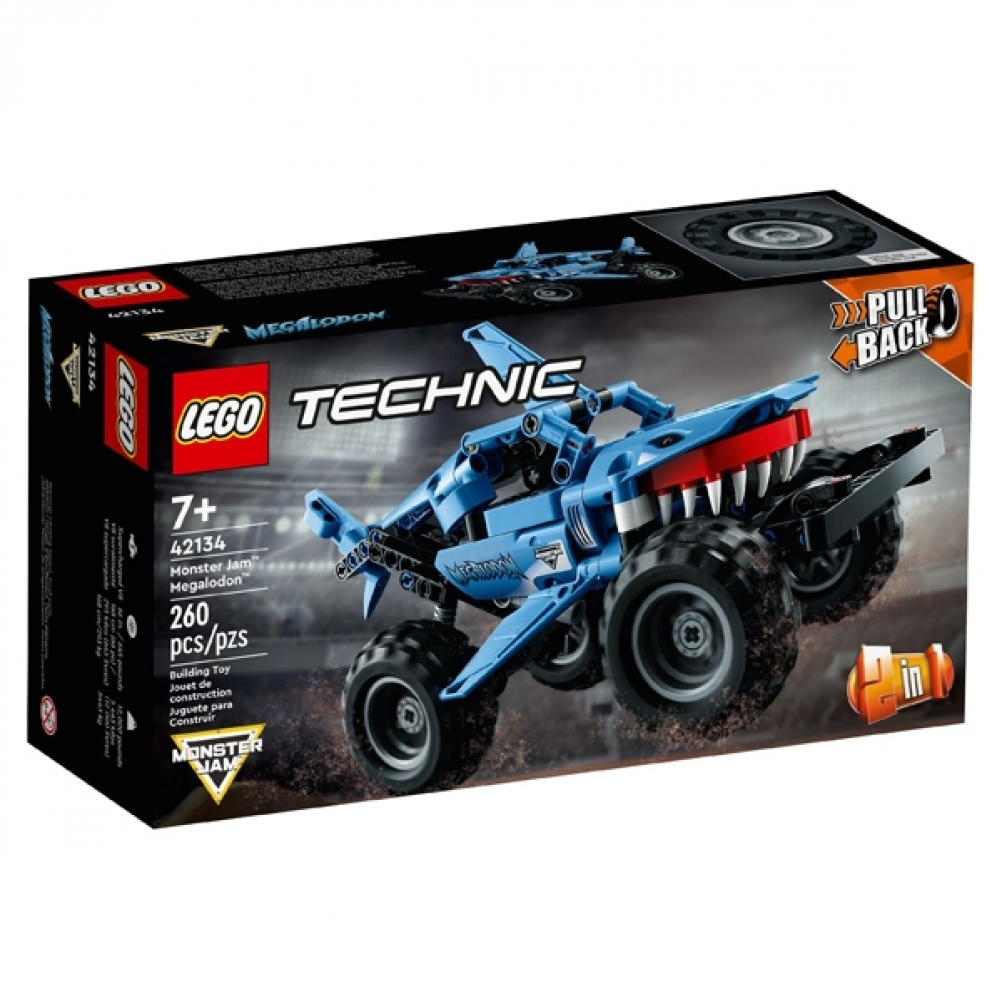 Scopri una replica fedele di uno dei camion preferiti dai fan di Monster Jam™ con questo Megalodon™ LEGO® Technic (42134) con funzione pull-back per la fascia di età 7+.