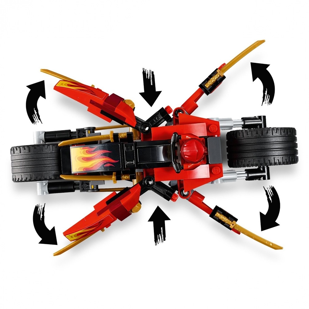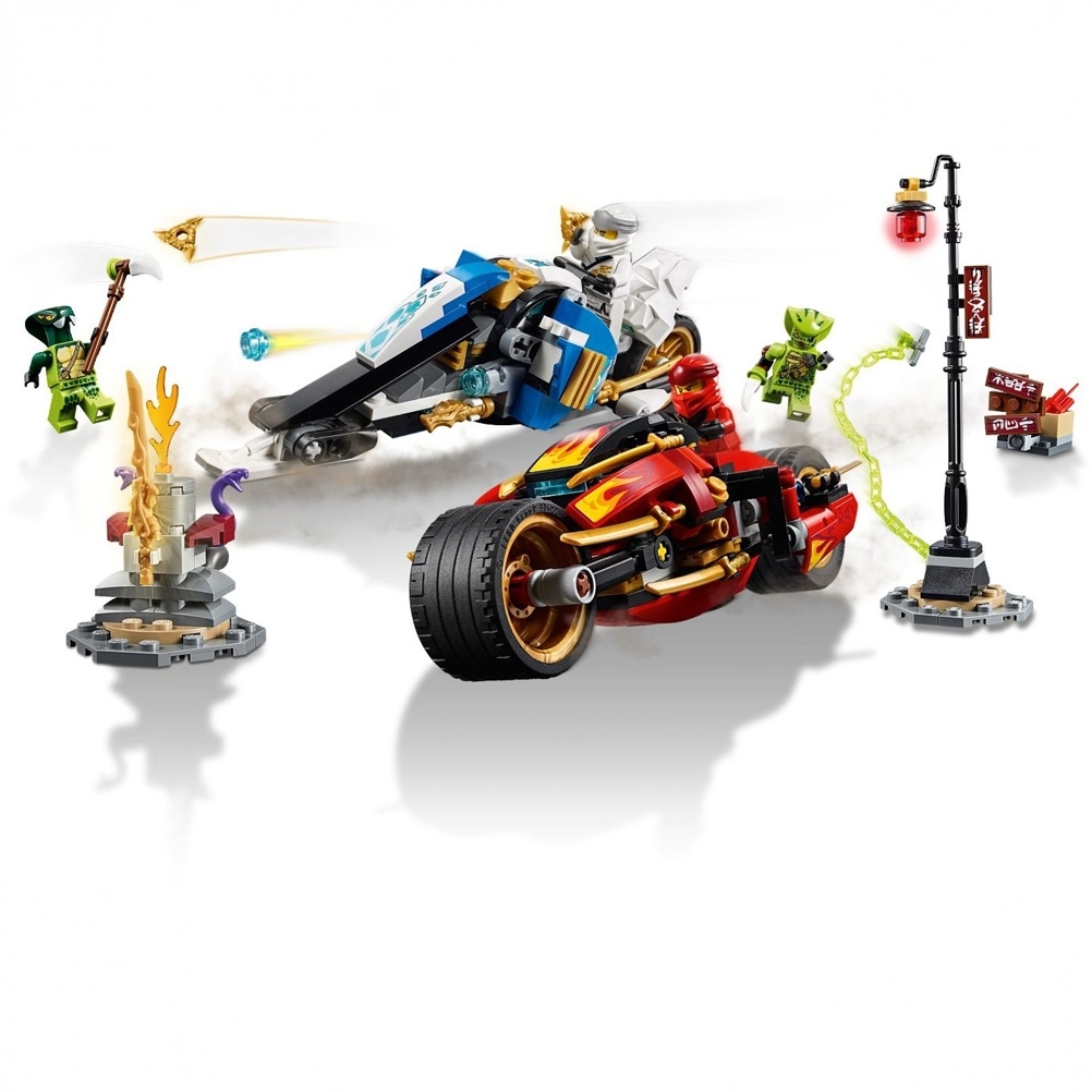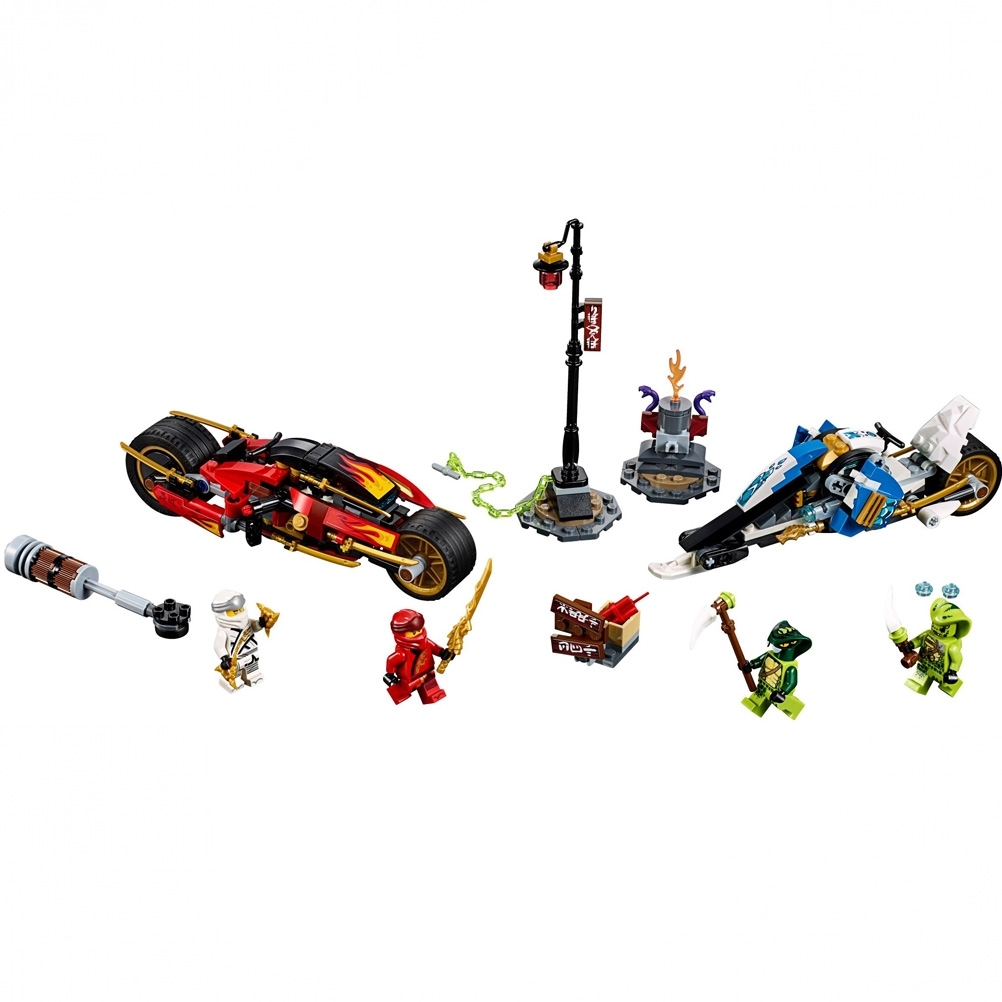 La moto del Ninja di Fuoco Kai è dotata di lame apribili e grandi ruote mentre mentre la Moto-neve di Zane è dotata di 2 shooter e l'arma d'oro di Zane, le shuriken di ghiaccio.