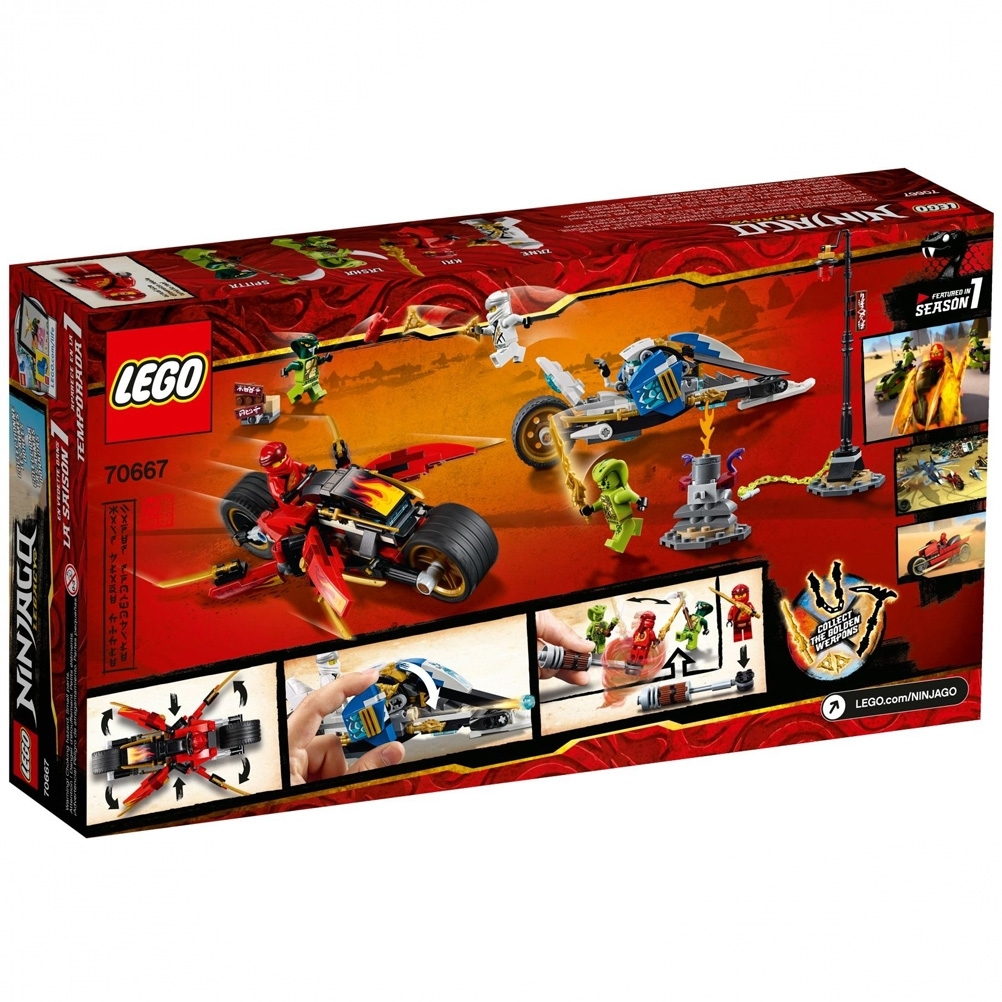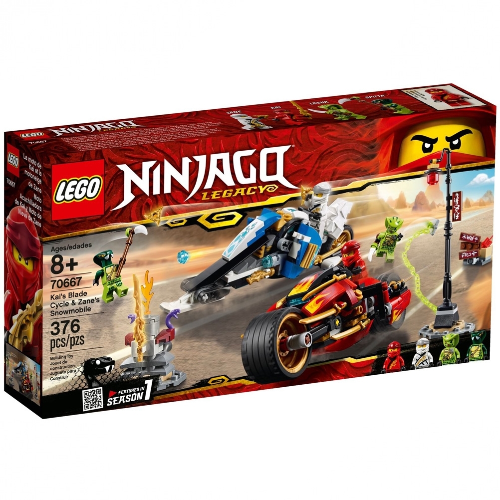 Lanciati in battaglia con la Moto-lama di Kai e la Moto-neve di Zane LEGO® NINJAGO® Legacy 70667 e recupera la Spada di Fuoco rubata dai Serpentini.