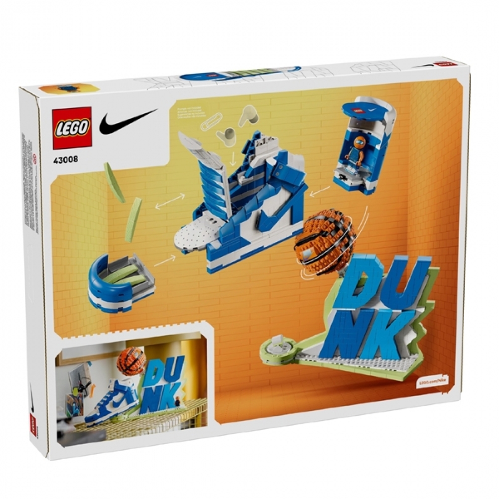 - Esclusiva minifigure LEGO®: il kit di costruzione è accompagnato da due sclusive minifigure di B’Ball Head con il suo drip Nike e Nike Dunk che si abbinano perfettamente al tuo nuovo modello