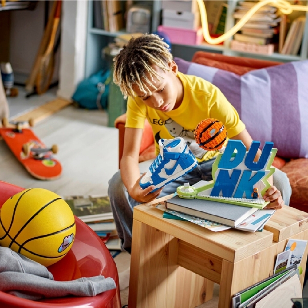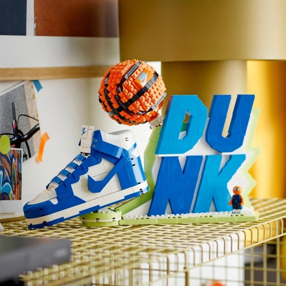 Collezionabile, personalizzabile e con la tipica attitudine del basket, il modello da collezione è destinato a diventare uno dei lanci più cool dell’anno. Il set comprende una Nike Dunk, un pallone da basket in mattoncini girevole e l’iconico slogan “Dunk” che gli appassionati di sport possono costruire, ricostruire ed esporre. All’interno del modello Nike Dunk si nascondono diversi scomparti per riporre gli anelli di campionato o altri oggetti essenziali, oltre a lacci extra per tanta personalizzazione in più. Il modello è accompagnato dalla minifigura esclusiva del super fan B’Ball Head, con il suo drip Nike, e alcune mini Nike Dunk.