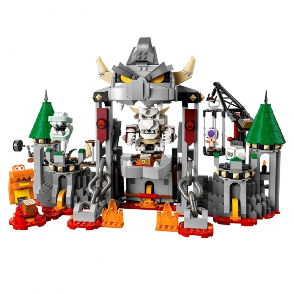 - Missione di salvataggio: esplora il castello con LEGO Peach, LEGO Mario o LEGO Luigi (personaggi non inclusi) e usa la gru per salvare Toad viola dalla trappola e abbattere Skelobowser