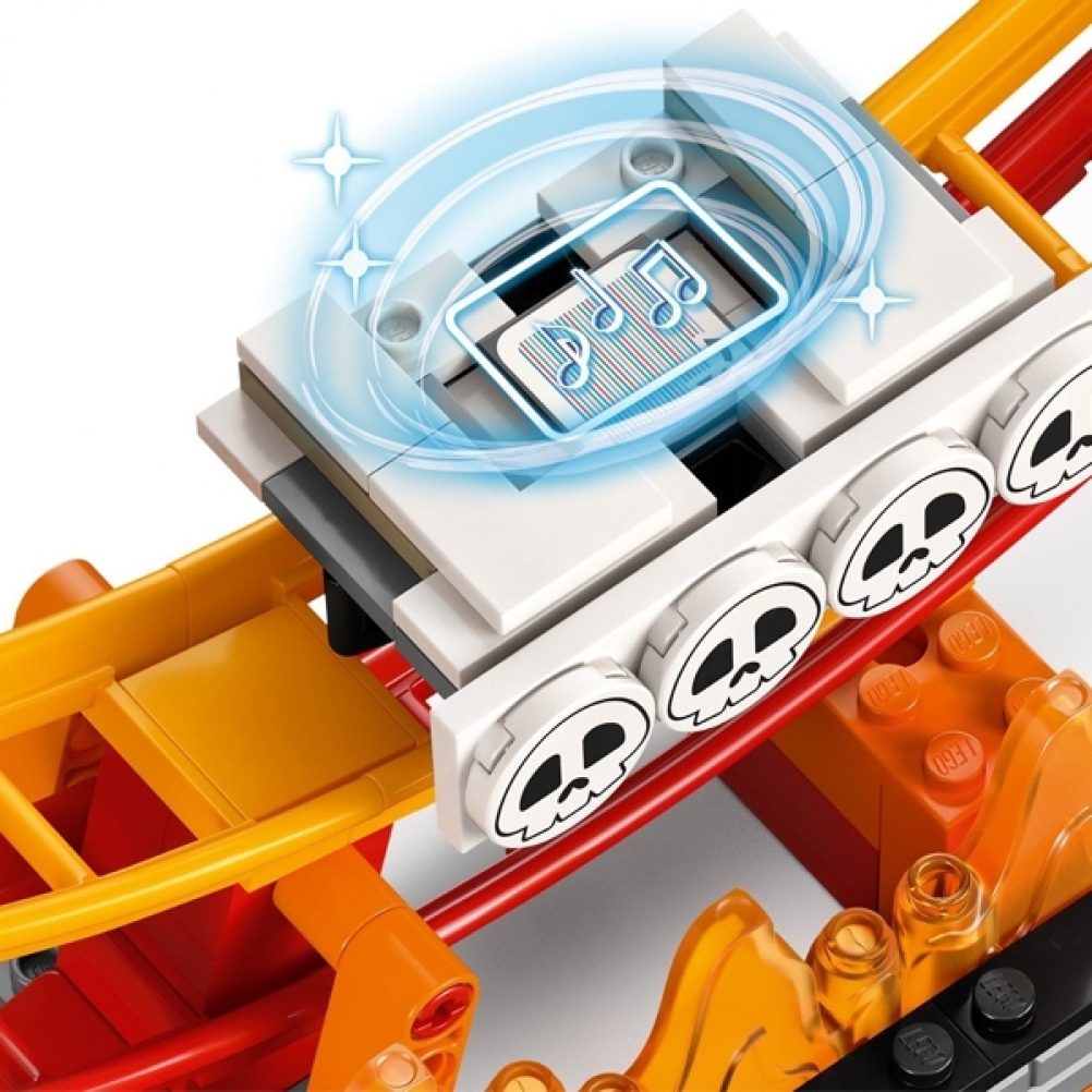 - Onda lavica oscillante: aiuta LEGO Mario, LEGO Luigi o LEGO Peach (personaggi non inclusi) a cavalcare l’onda sulla piattaforma lavica e guadagna monete digitali rimanendoci sopra e sconfiggendo i Fiammetti