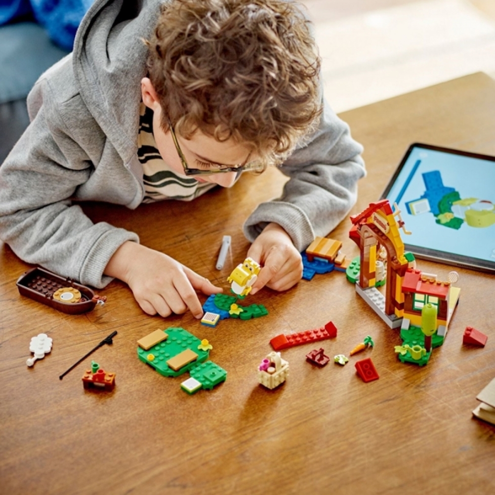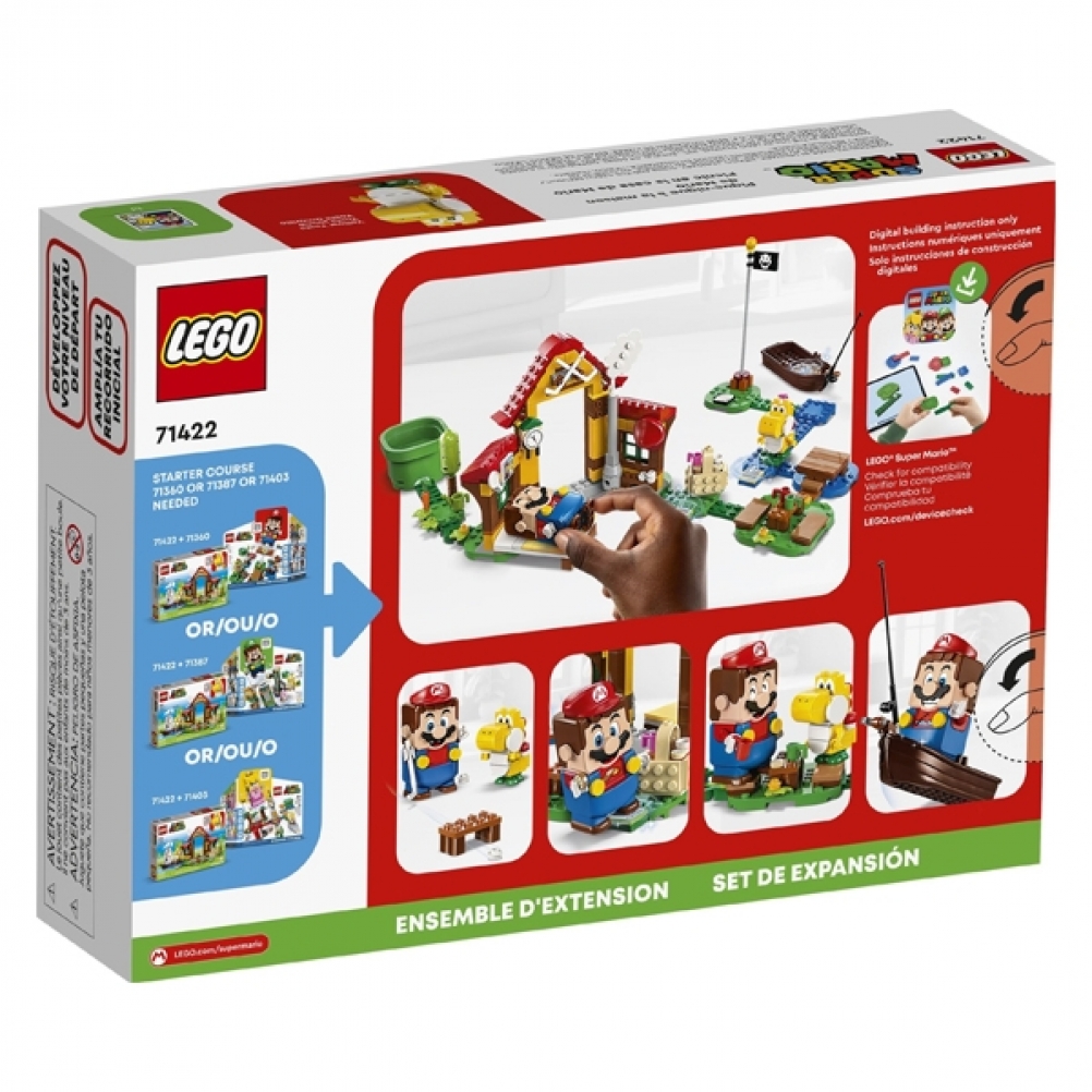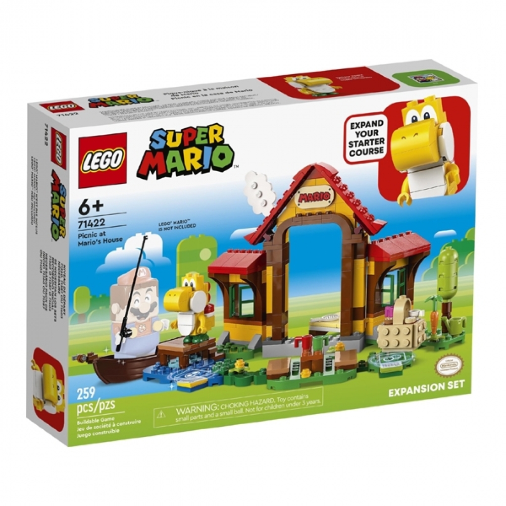 Con il meraviglioso Pack di espansione Picnic a casa di Mario LEGO Super Mario (71422), i bambini possono creare un livello ricco di divertimento. La casa e il giardino in mattoncini dettagliati offrono ricche opzioni di gioco di ruolo e modi per i giocatori di guadagnare monete digitali con i loro personaggi interattivi LEGO Mario, LEGO Luigi o LEGO Peach (non inclusi). Saluta Yoshi Giallo, dormi sul letto, ‘mangia’ i biscotti dal cestino del picnic, ‘innaffia’ le verdure dell’orto, gioca a hockey o vai a pescare in barca. Nota: per il gioco interattivo è necessario lo Starter Pack 71360, 71387 o 71403.