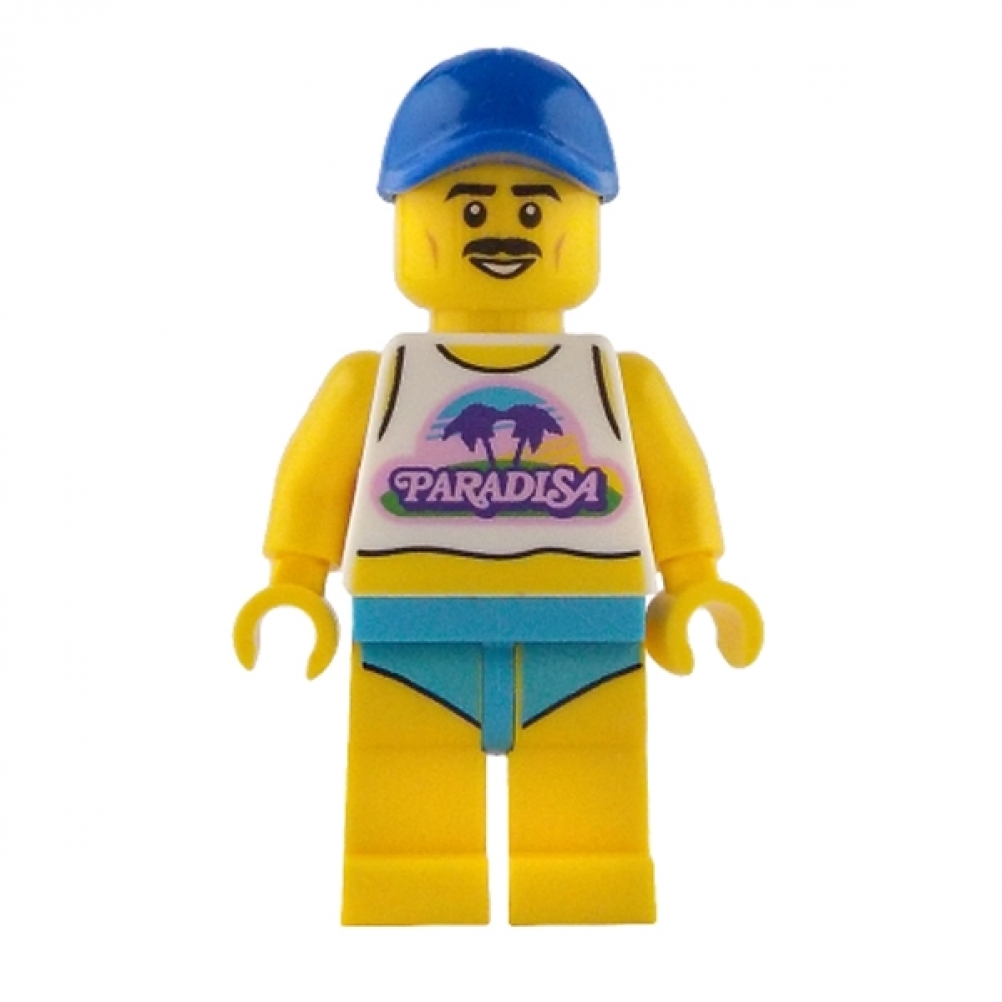 Con il suo look rilassato e pieno di stile anni ’90, questa minifigure della linea LEGO® Paradisa indossa una canotta sportiva, pantaloncini chiari e sfoggia un cappello blu. Perfetto per accompagnare scene da resort, passeggiate sul lungomare o avventure estive in stile vintage LEGO®.