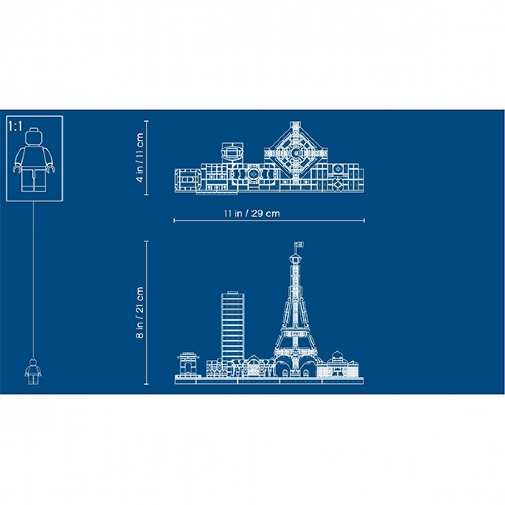 Riunisci i monumenti iconici di Parigi con questo magnifico modello di skyline di Parigi. Il set 21044 LEGO® Architecture Skyline Collection contiene l'Arco di Trionfo, gli Champs-Elysées, la Tour Montparnasse, il Grand Palais, la Torre Eiffel e il Louvre, ed è rifinito con aree erbose e alberate e una targhetta decorativa di Parigi. Questo set è stato progettato per offrire un'esperienza di costruzione gratificante e rilassante a tutti coloro che sono interessati all'architettura, ai viaggi, alla storia e al design, e costituisce un vero e proprio "mangnifique" centrotavola per la casa o l'ufficio. Ogni modello di skyline viene ridimensionato per fornire una rappresentazione accurata delle dimensioni comparative delle strutture in evidenza, con una rappresentazione a colori realistica.