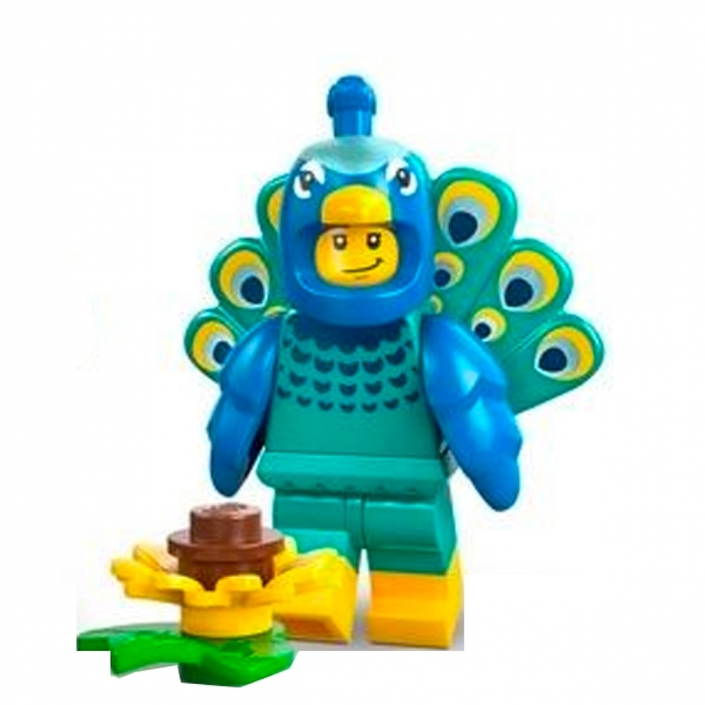 Elegante e coloratissima, questa minifigure travestita da pavone porta un fiore come simbolo di grazia e bellezza. Ideale per collezionisti che amano i costumi più eccentrici!