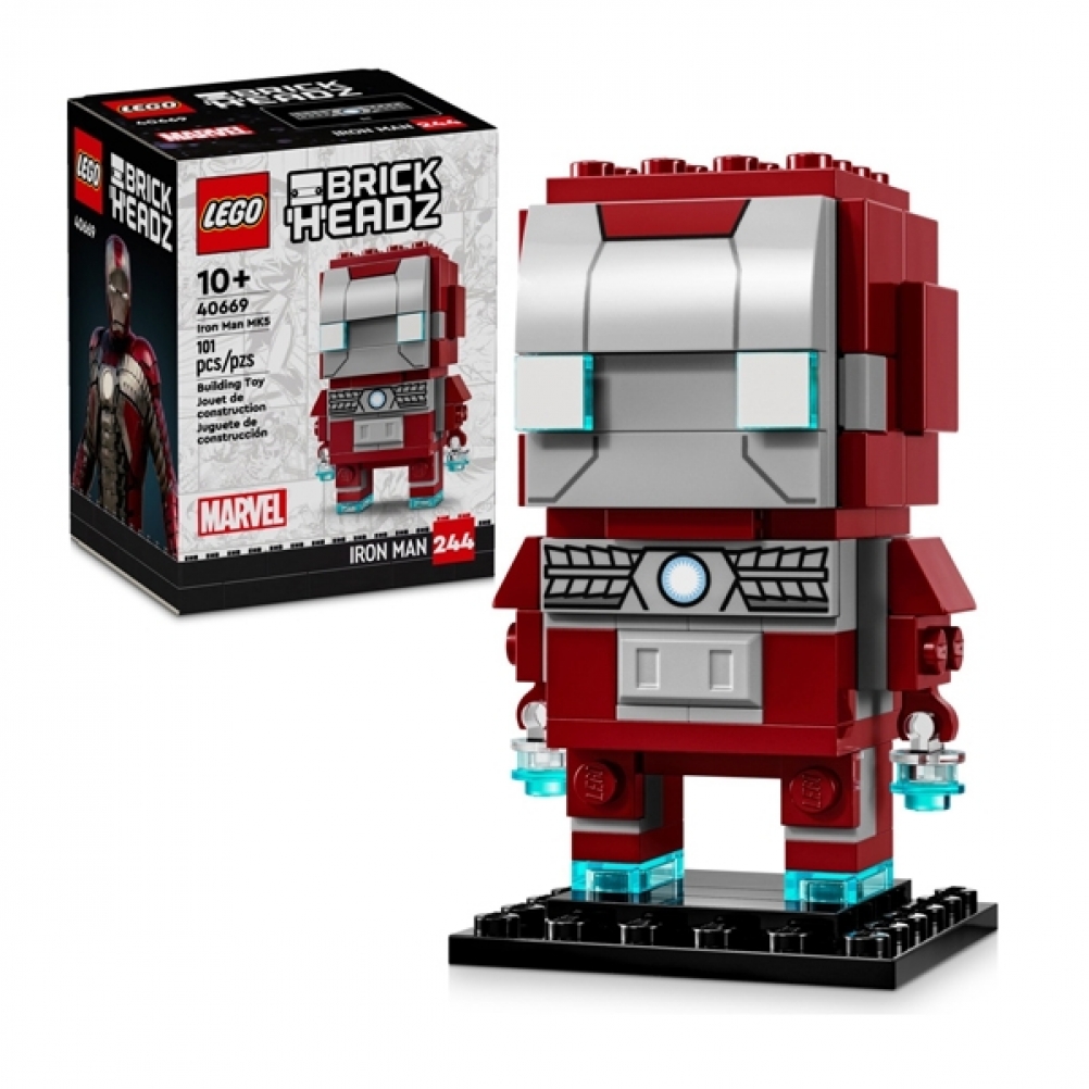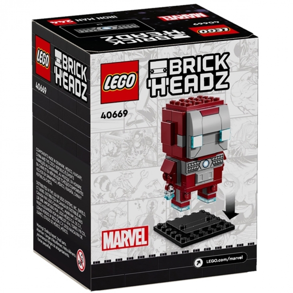- Grande Iron man in mattoncini: composto da 101 pezzi in totale, il personaggio di Iron Man Marvel LEGO® BrickHeadz™ è alto 8 cm