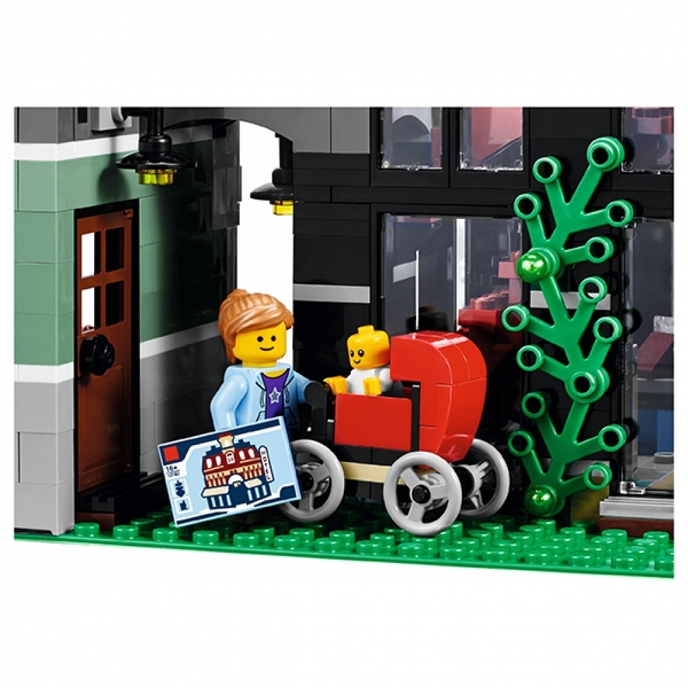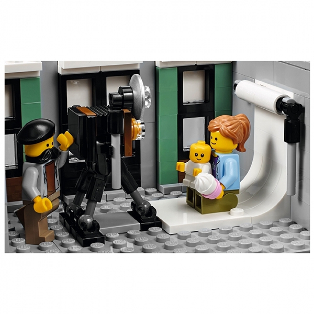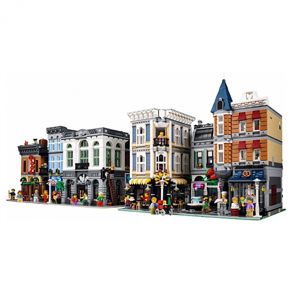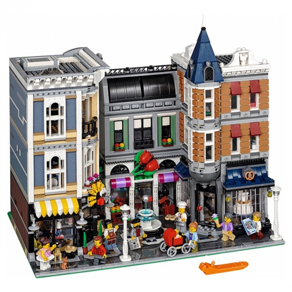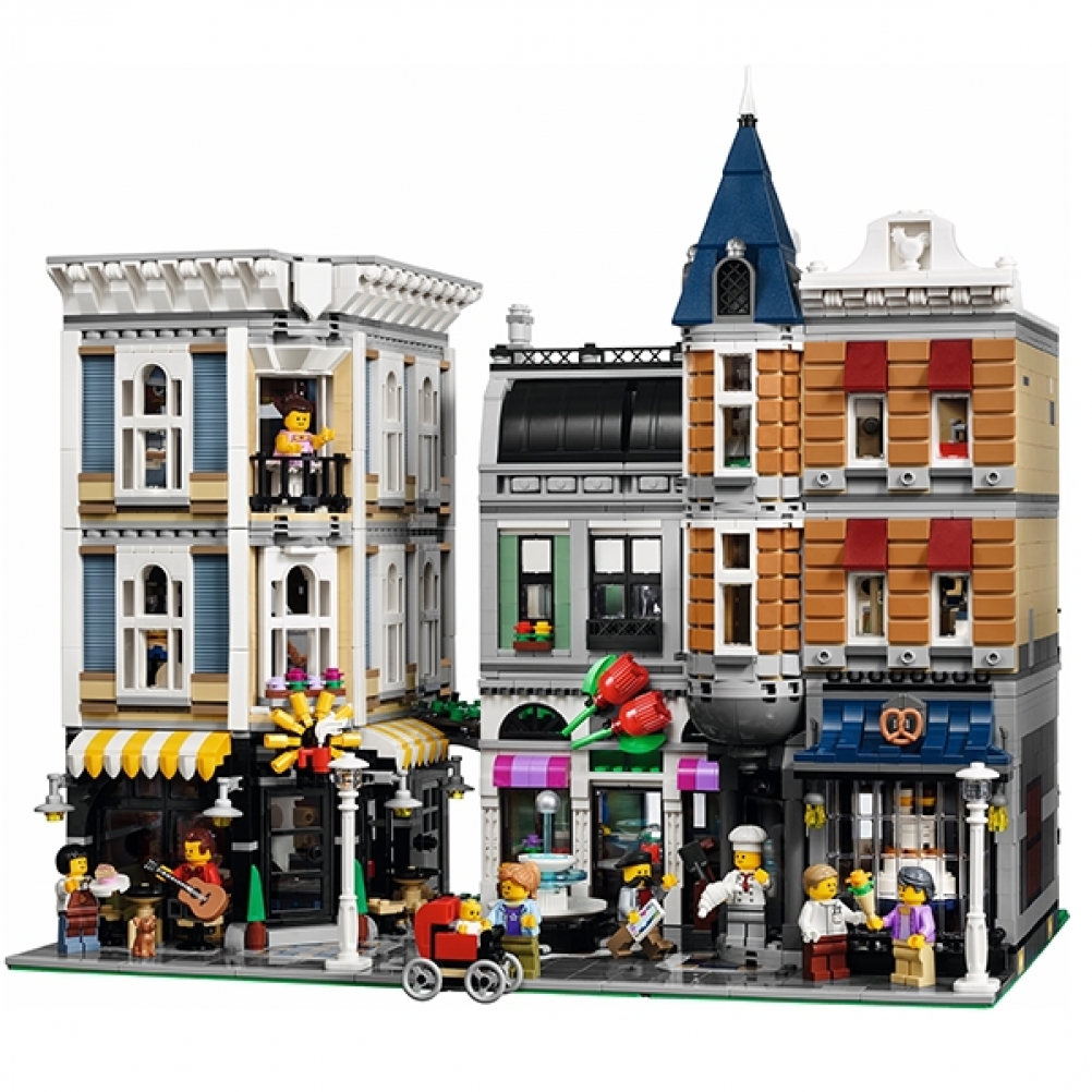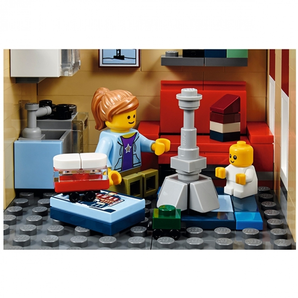Visita la splendida Piazza dell’Assemblea, sviluppata in occasione dei dieci anni degli edifici modulari LEGO®, e dotata di tantissimi originali e intricati dettagli e sorprese nascoste. Le sezioni dell’edificio, facili da rimuovere, consentono di accedere all’interno dettagliato, composto da piano terra con panetteria, fioraio e caffetteria, secondo livello con negozio di musica, studio fotografico e studio dentistico, e al terzo piano uno studio di danza e un appartamento con accesso a una terrazza panoramica con barbecue. L’esterno dell’edificio è dotato di marciapiede dettagliato con tavoli e sedie della caffetteria, fontana, lampioni e una facciata altamente elaborata con bellissime finestre e porte dettagliate, tre insegne costruibili, torre con guglie e linea del tetto ornata. Include otto minifigure e un bebè.