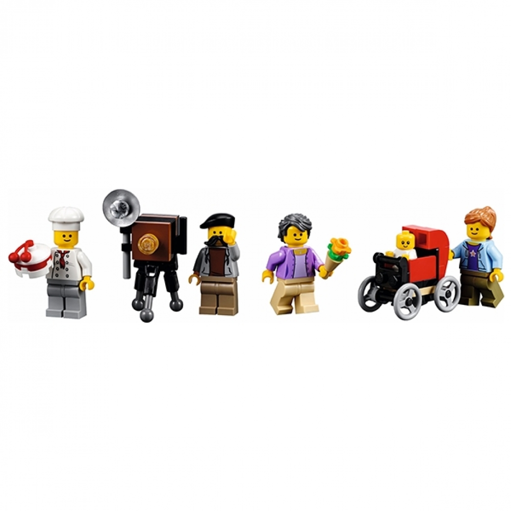 Include otto minifigure: un dentista, un barista, un panettiere, un fiorista, l’assistente del negozio di musica, un ballerino, un fotografo e un’appassionata LEGO®, oltre a un bebè.