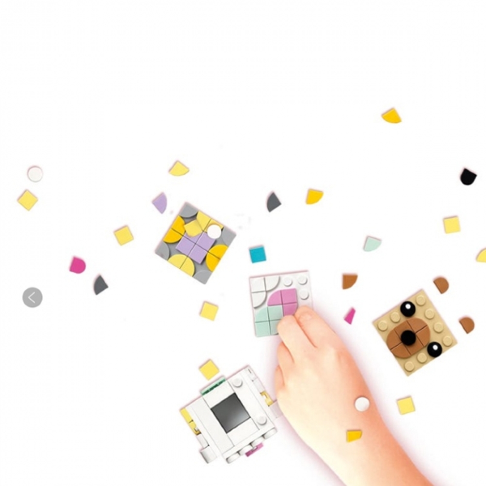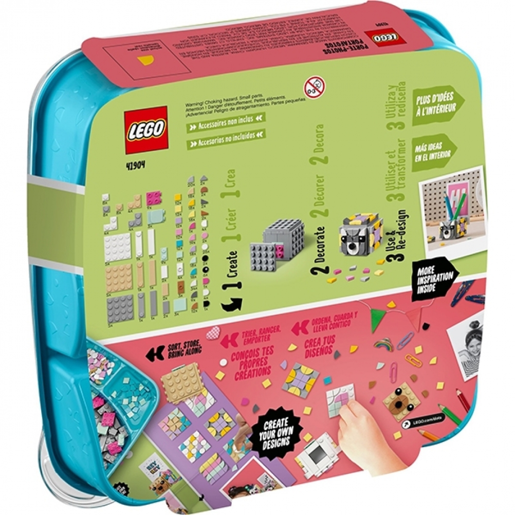 Alimenta l'amore del tuo bambino per il fai da te creativo con questo delizioso set di cubi LEGO® DOTS™ (41904), caratterizzato da 3 cubi di animali con coperchi e portafoto.