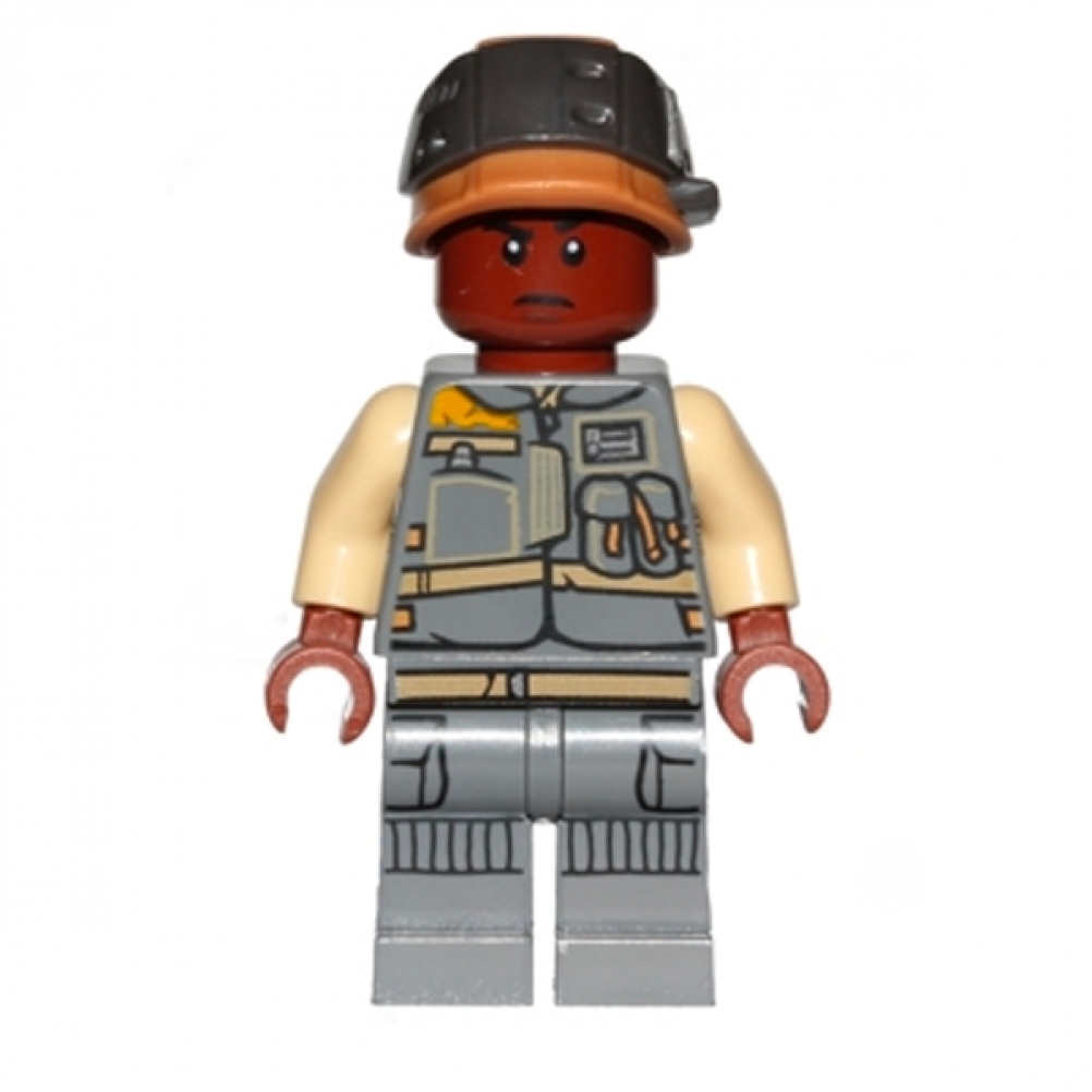 La minifigure presenta una testa color reddish brown, casco con banda pearl dark gray e una divisa dettagliata da combattimento.