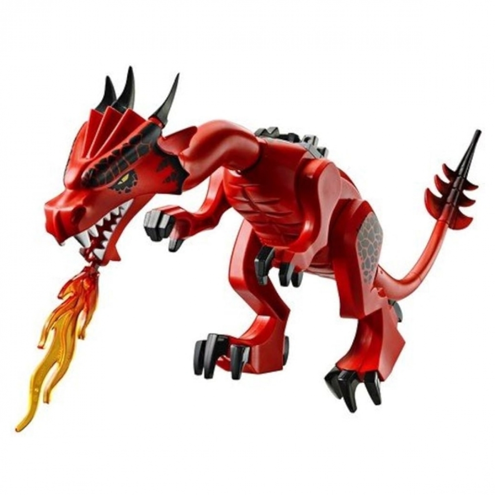 Il drago del set LEGO 70403 Dragon Mountain è un drago imponente e dettagliato, progettato per essere l'elemento centrale di questo set. Il drago è caratterizzato da una testa feroce con occhi rossi, ali grandi e una coda lunga, che gli conferiscono un aspetto minaccioso e potente. Il corpo del drago è costruito con una combinazione di pezzi che gli conferiscono una struttura robusta e dinamica, mentre le sue ali sono ampie e articolate, rendendolo un avversario formidabile nel contesto del set.